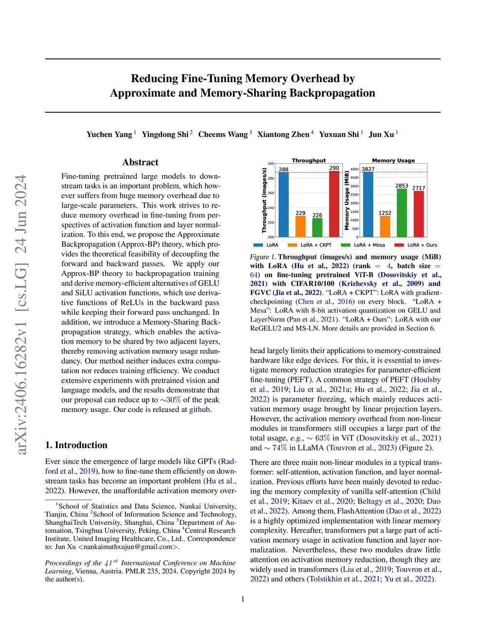 Reducing Fine-Tuning Memory Overhead by Approximate and Memory-Sharing