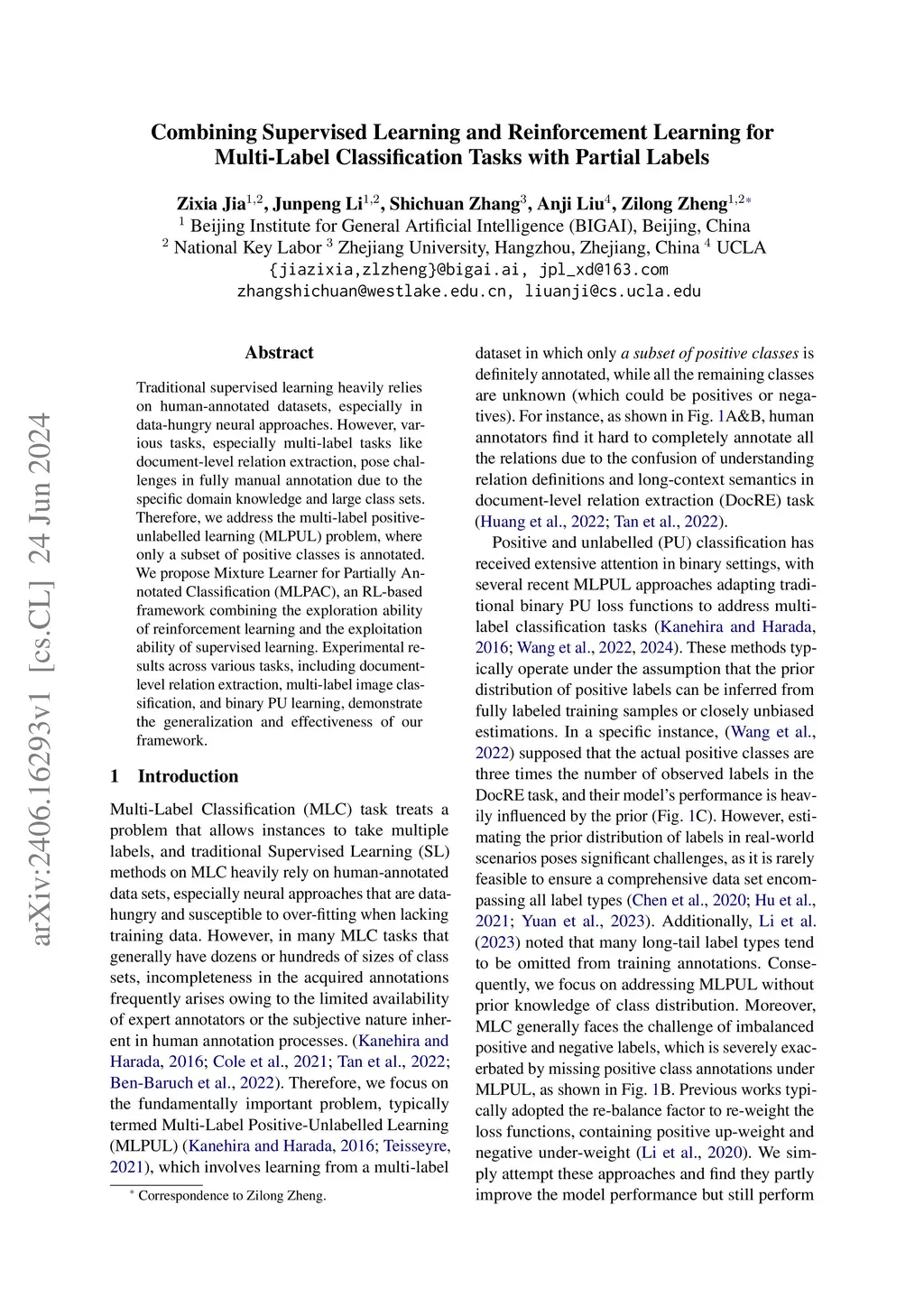 Traditional supervised learning heavily relies on human-annotated datasets, especially in data-hungry neural approaches. However, various tasks, especially multi-label tasks like document-level relation extraction, pose challenges in fully manual annotation due to the specific domain knowledge and large class sets. Therefore, we address the multi-label positive-unlabelled learning (MLPUL) problem, where only a subset of positive classes is annotated. We propose Mixture Learner for Partially Annotated Classification (MLPAC), an RL-based framework combining the exploration ability of reinforcement learning and the exploitation ability of supervised learning. Experimental results across various tasks, including document-level relation extraction, multi-label image classification, and binary PU learning, demonstrate the generalization and effectiveness of our framework.
