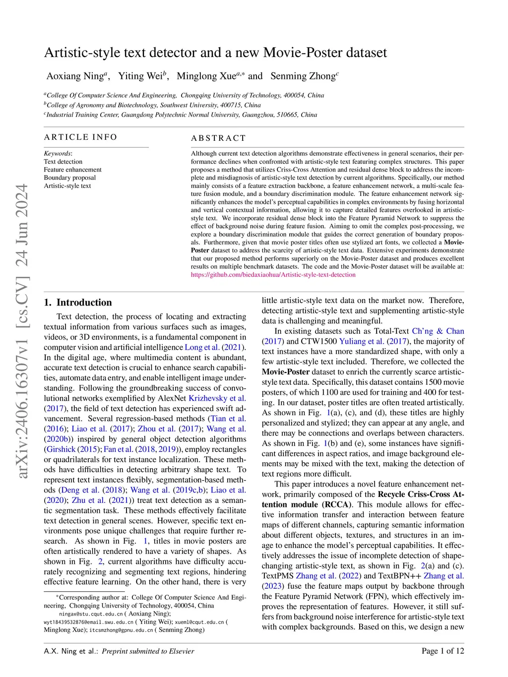 Artistic-style text detector and a new Movie-Poster dataset
