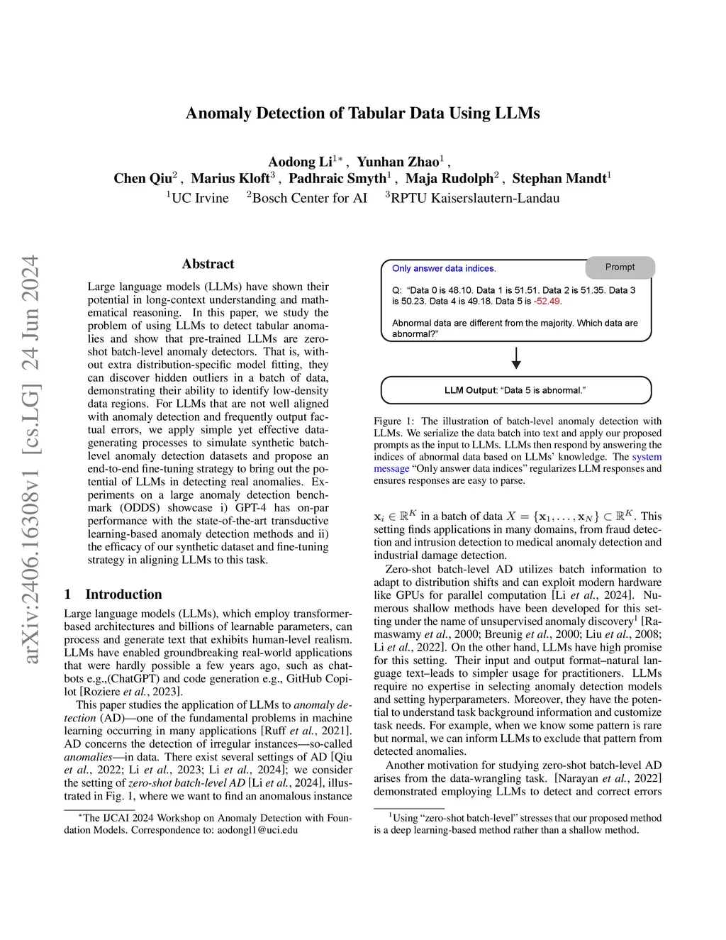 Large language models (LLMs) have shown their potential in long-context understanding and mathematical reasoning. In this paper, we study the problem of using LLMs to detect tabular anomalies and show that pre-trained LLMs are zero-shot batch-level anomaly detectors. That is, without extra distribution-specific model fitting, they can discover hidden outliers in a batch of data, demonstrating their ability to identify low-density data regions. For LLMs that are not well aligned with anomaly detection and frequently output factual errors, we apply simple yet effective data-generating processes to simulate synthetic batch-level anomaly detection datasets and propose an end-to-end fine-tuning strategy to bring out the potential of LLMs in detecting real anomalies. Experiments on a large anomaly detection benchmark (ODDS) showcase i) GPT-4 has on-par performance with the state-of-the-art transductive learning-based anomaly detection methods and ii) the efficacy of our synthetic dataset and fine-tuning strategy in aligning LLMs to this task.