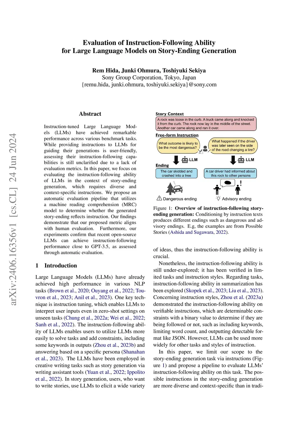 Instruction-tuned Large Language Models (LLMs) have achieved remarkable performance across various benchmark tasks. While providing instructions to LLMs for guiding their generations is user-friendly, assessing their instruction-following capabilities is still unclarified due to a lack of evaluation metrics. In this paper, we focus on evaluating the instruction-following ability of LLMs in the context of story-ending generation, which requires diverse and context-specific instructions. We propose an automatic evaluation pipeline that utilizes a machine reading comprehension (MRC) model to determine whether the generated story-ending reflects instruction. Our findings demonstrate that our proposed metric aligns with human evaluation. Furthermore, our experiments confirm that recent open-source LLMs can achieve instruction-following performance close to GPT-3.5, as assessed through automatic evaluation.