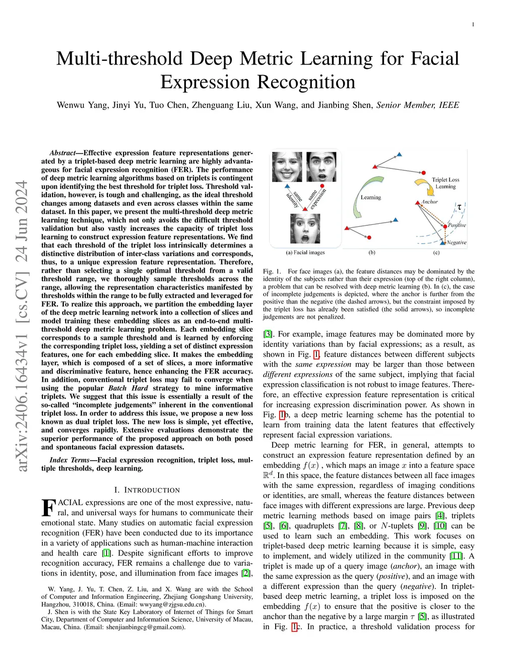 Multi-threshold Deep Metric Learning for Facial Expression Recognition