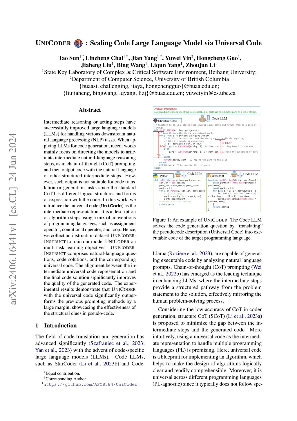 UniCoder: Scaling Code Large Language Model via Universal Code