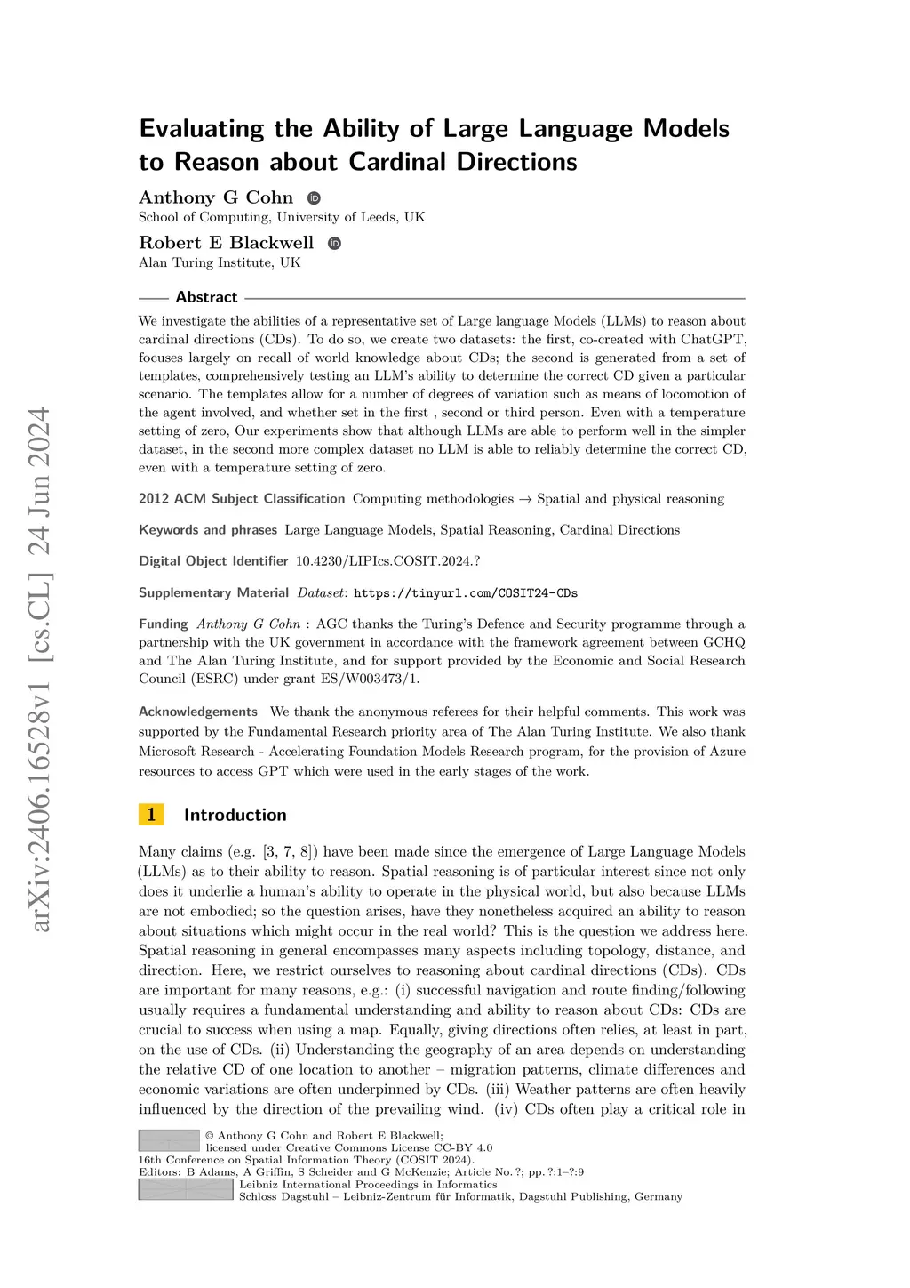 Evaluating the Ability of Large Language Models to Reason about Cardinal