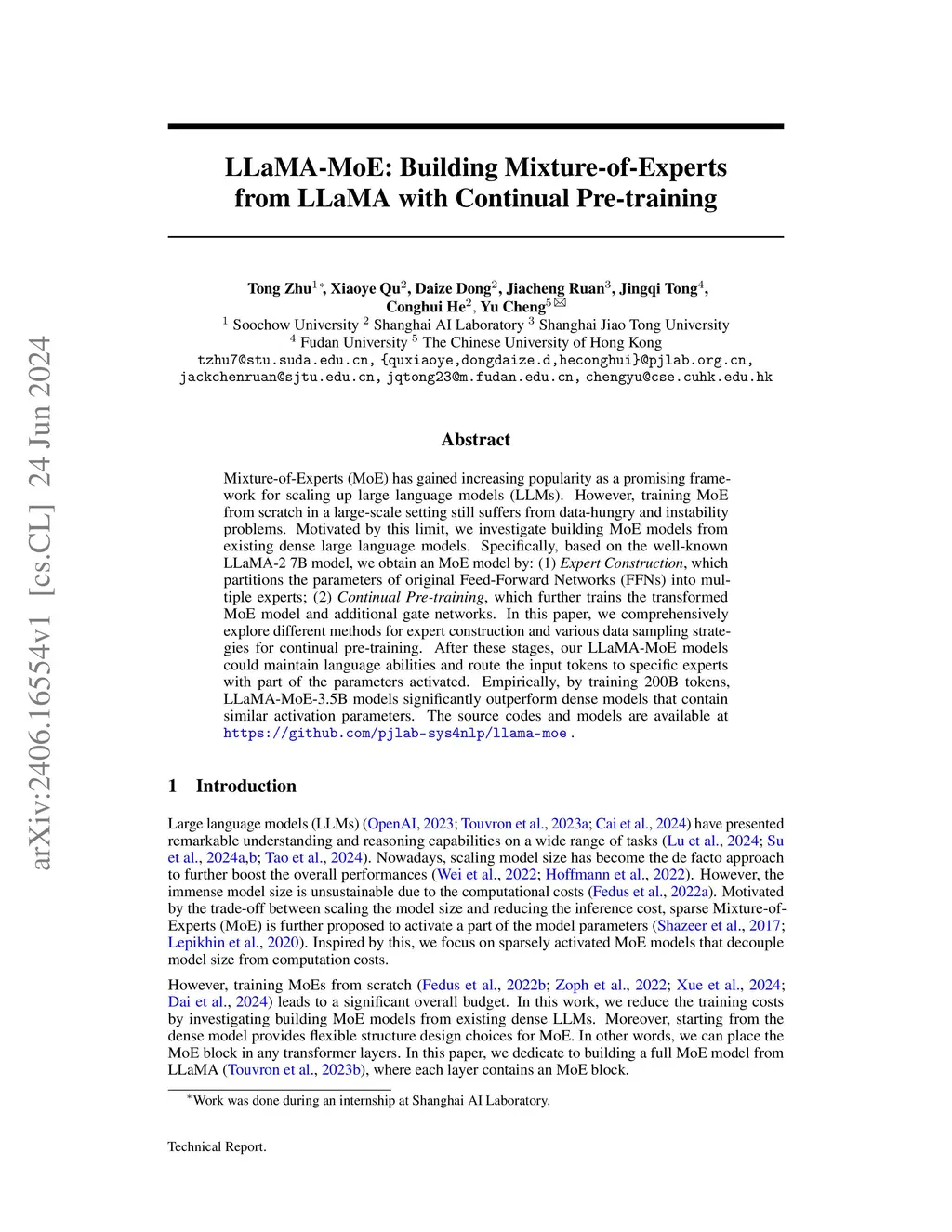LLaMA-MoE: Building Mixture-of-Experts from LLaMA with Continual