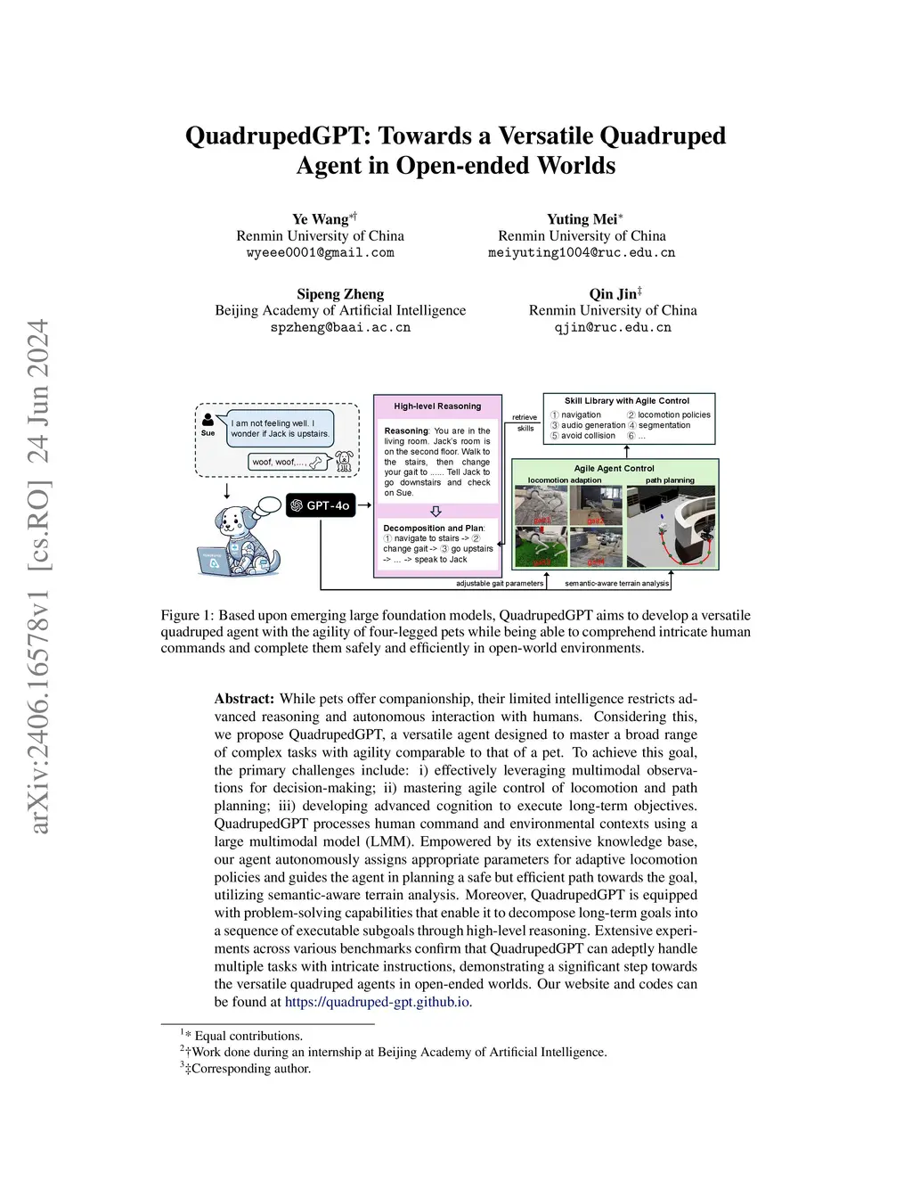QuadrupedGPT: Towards a Versatile Quadruped Agent in Open-ended Worlds