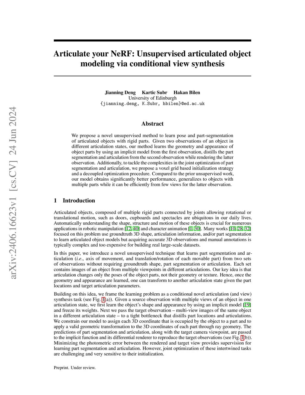 Articulate your NeRF: Unsupervised articulated object modeling via