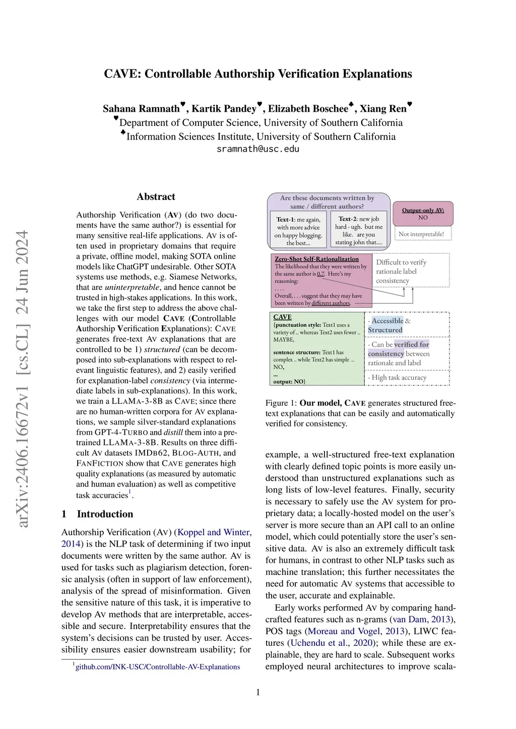 CAVE: Controllable Authorship Verification Explanations