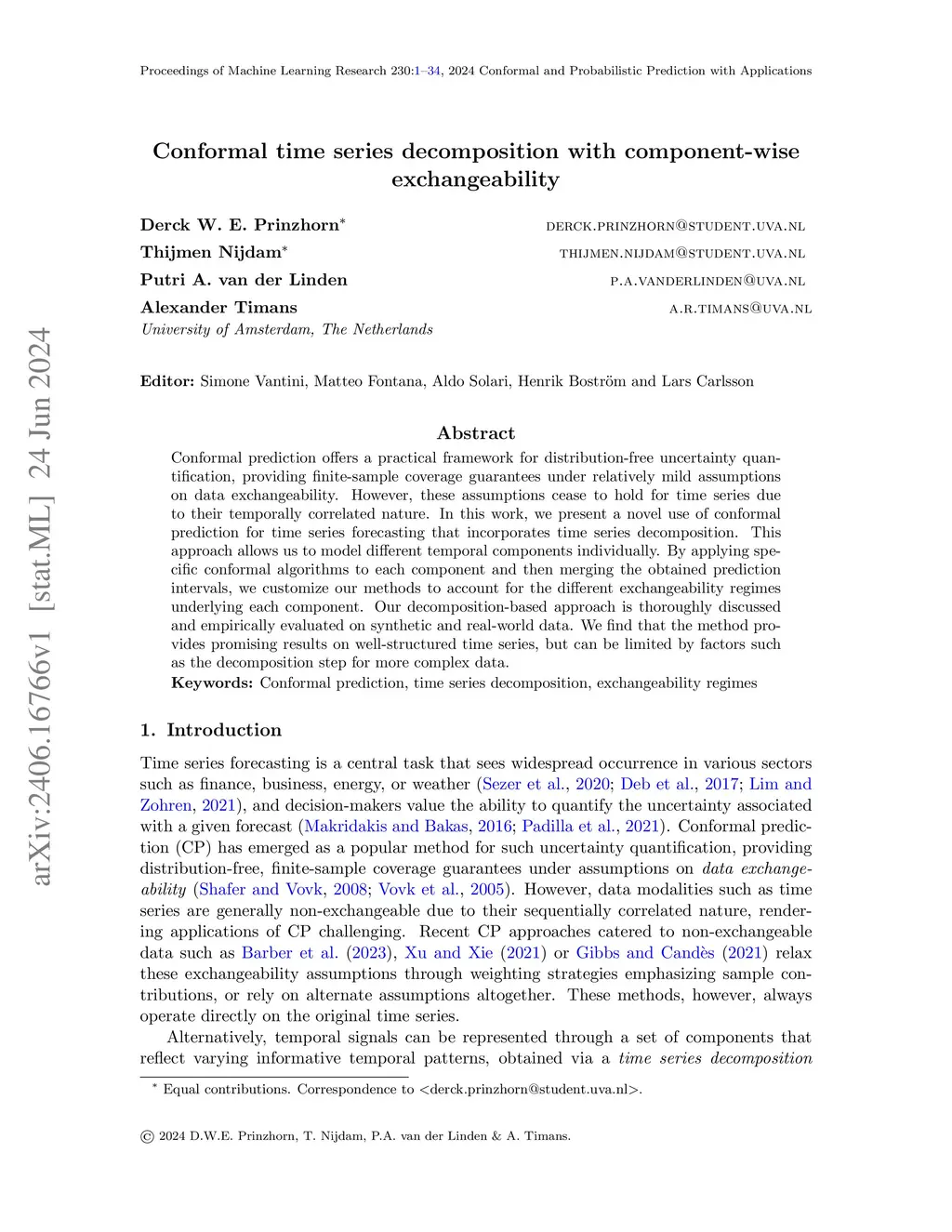 Conformal time series decomposition with component-wise exchangeability