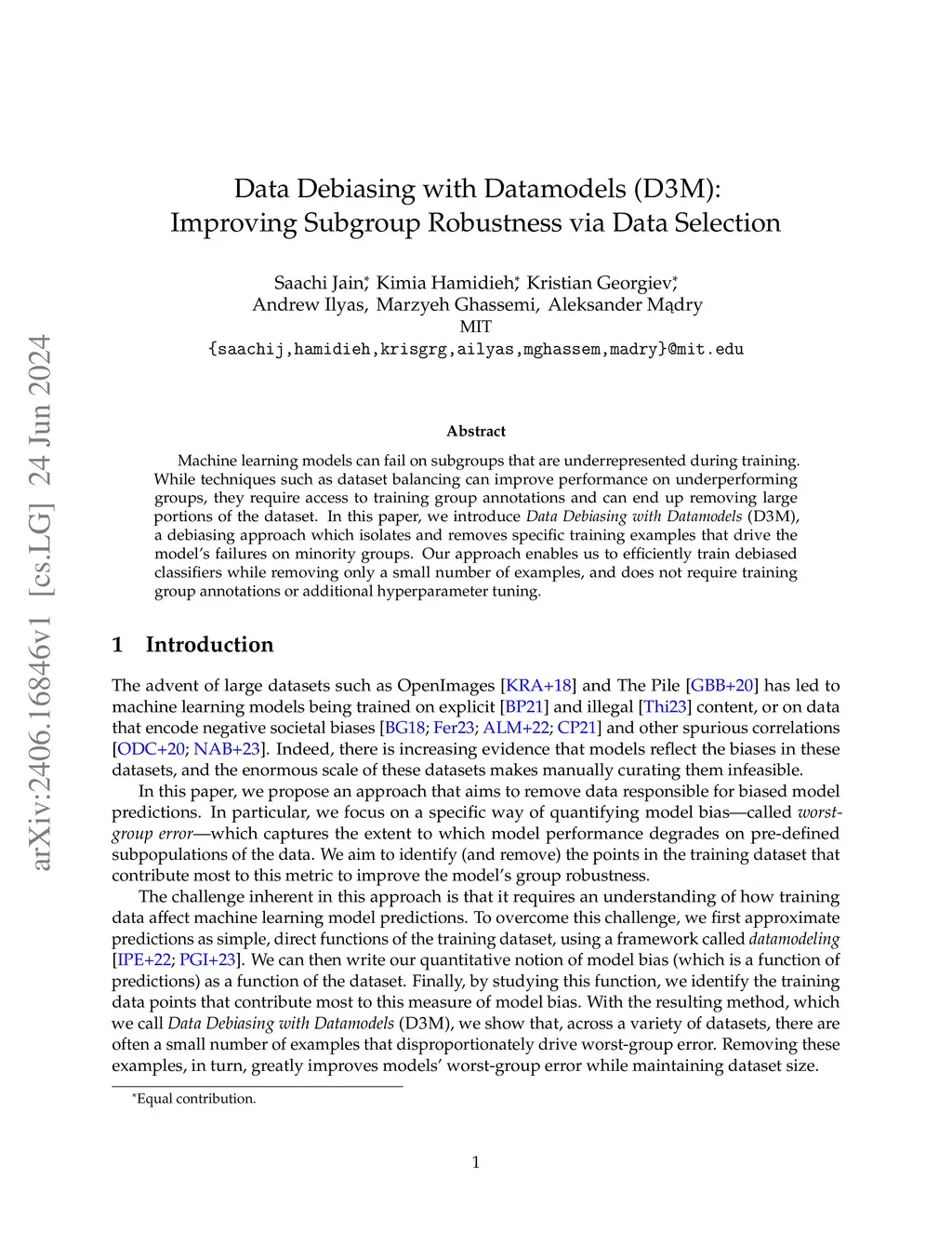 Data Debiasing with Datamodels (D3M): Improving Subgroup Robustness via