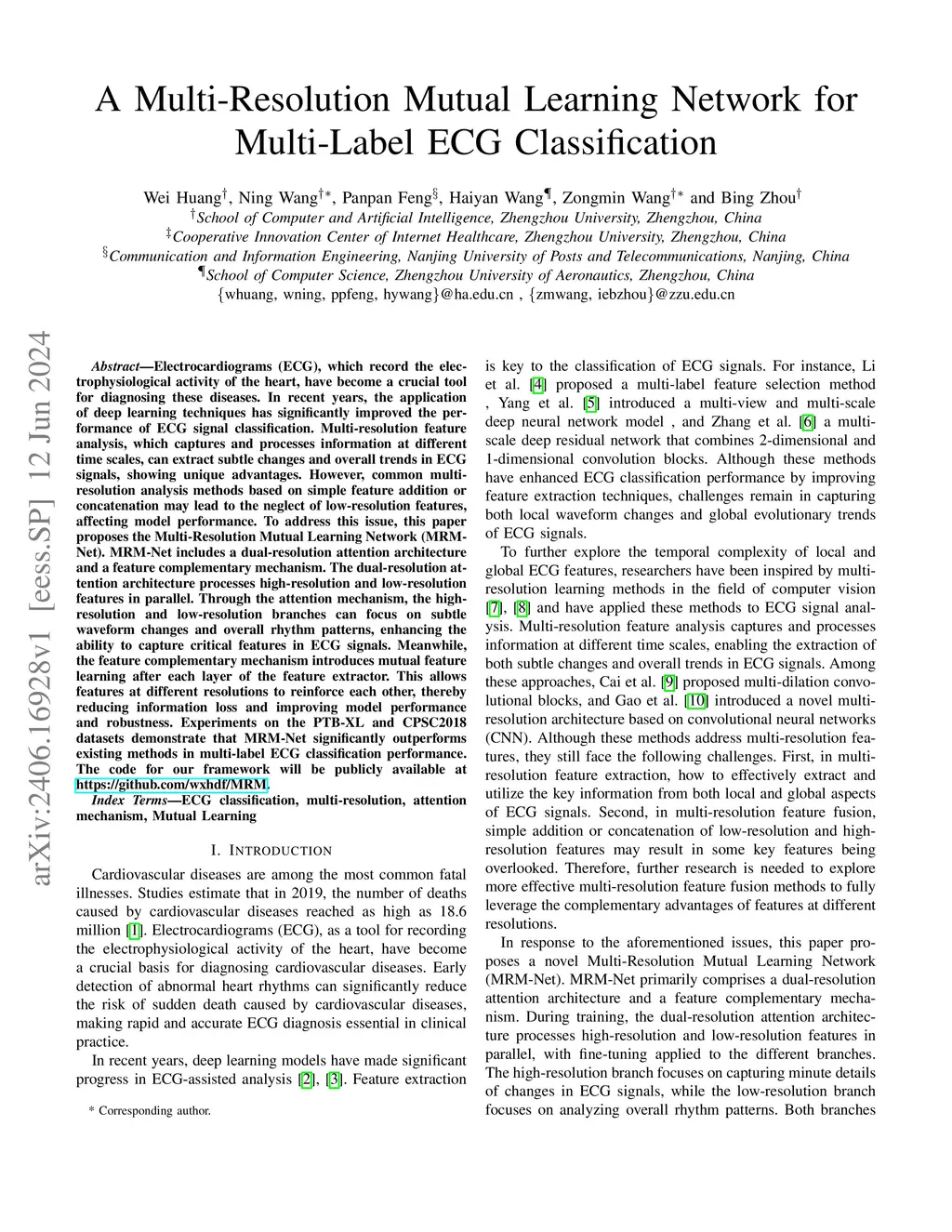 A Multi-Resolution Mutual Learning Network for Multi-Label ECG
