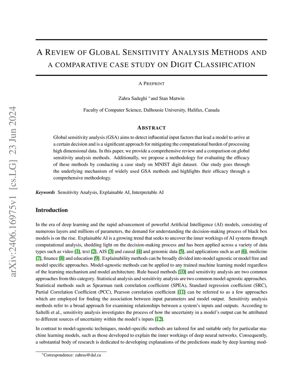 Global sensitivity analysis (GSA) aims to detect influential input factors that lead a model to arrive at a certain decision and is a significant approach for mitigating the computational burden of processing high dimensional data. In this paper, we provide a comprehensive review and a comparison on global sensitivity analysis methods. Additionally, we propose a methodology for evaluating the efficacy of these methods by conducting a case study on MNIST digit dataset. Our study goes through the underlying mechanism of widely used GSA methods and highlights their efficacy through a comprehensive methodology.