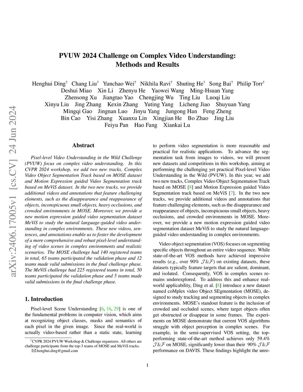 PVUW 2024 Challenge on Complex Video Understanding: Methods and Results