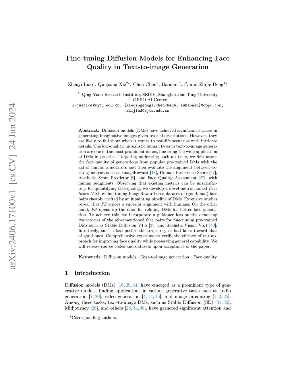 Fine-tuning Diffusion Models for Enhancing Face Quality in Text-to-image