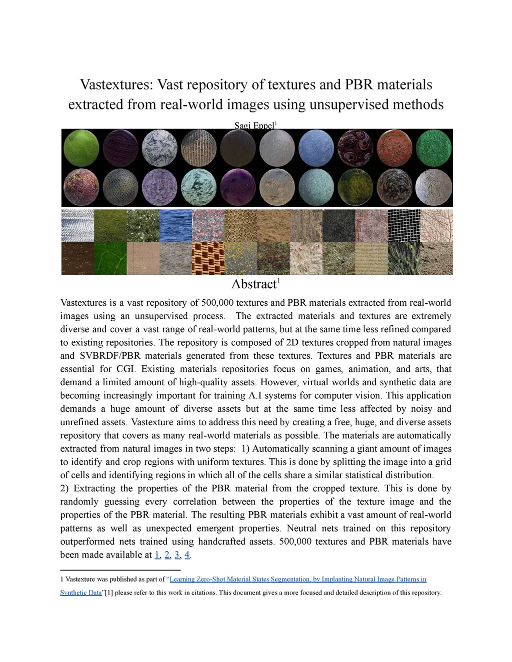 Vastextures: Vast repository of textures and PBR materials extracted from real-world images using unsupervised methods