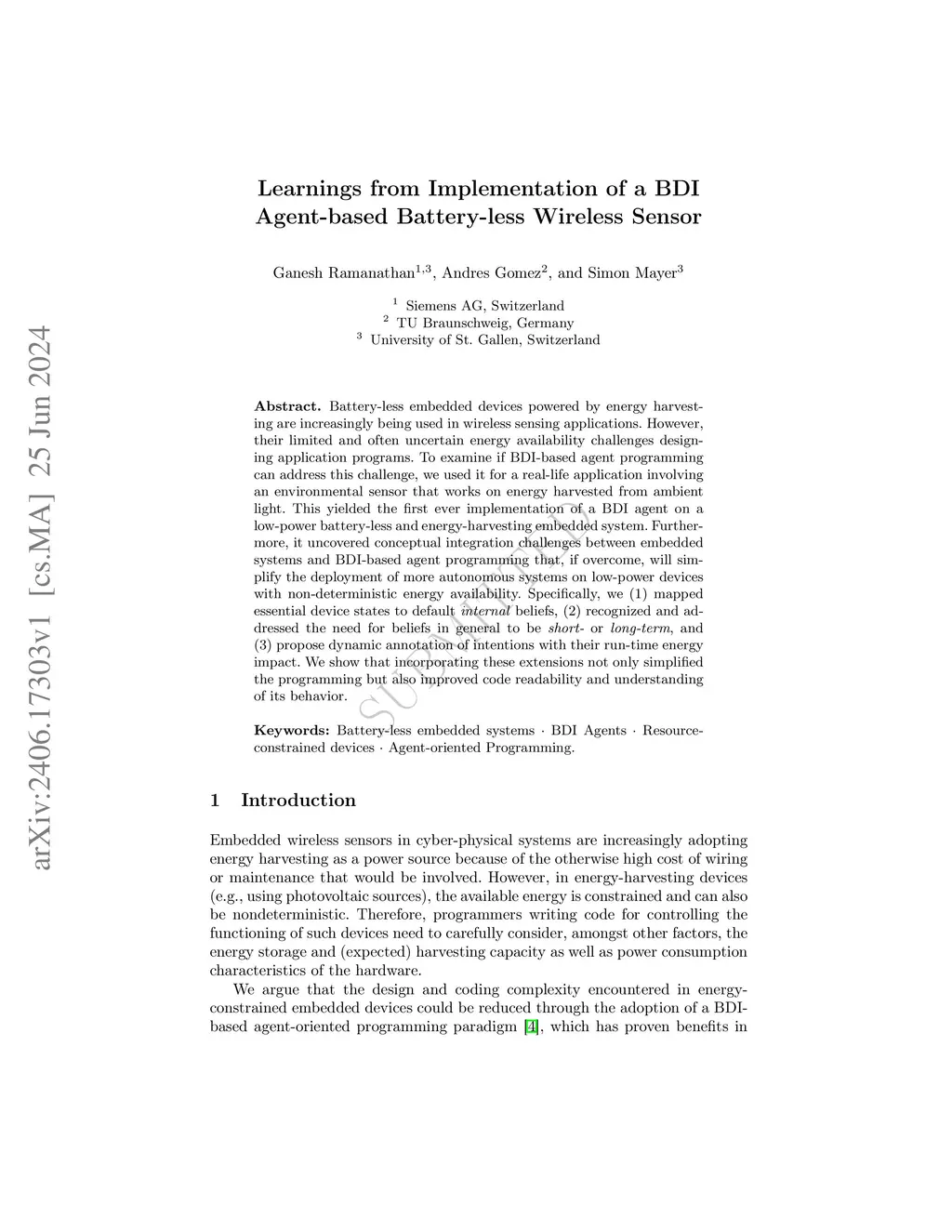 Learnings from Implementation of a BDI Agent-based Battery-less Wireless