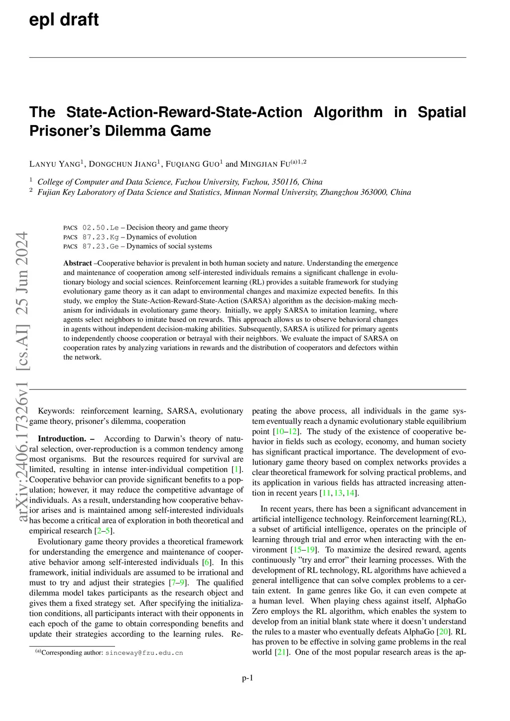The State-Action-Reward-State-Action Algorithm in Spatial Prisoner's