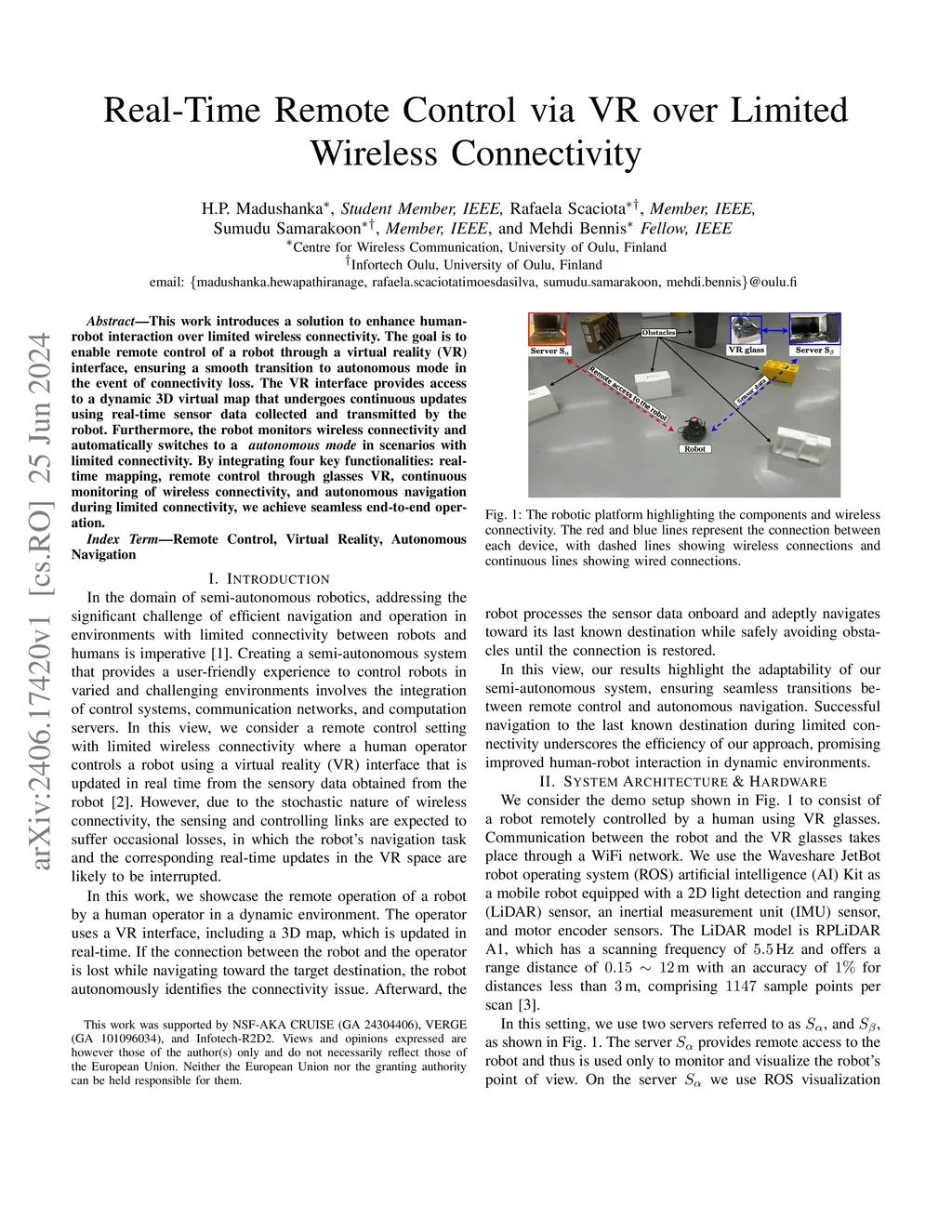 This work introduces a solution to enhance human-robot interaction over limited wireless connectivity. The goal is toenable remote control of a robot through a virtual reality (VR)interface, ensuring a smooth transition to autonomous mode in the event of connectivity loss. The VR interface provides accessto a dynamic 3D virtual map that undergoes continuous updatesusing real-time sensor data collected and transmitted by therobot. Furthermore, the robot monitors wireless connectivity and automatically switches to a autonomous mode in scenarios with limited connectivity. By integrating four key functionalities: real-time mapping, remote control through glasses VR, continuous monitoring of wireless connectivity, and autonomous navigation during limited connectivity, we achieve seamless end-to-end operation.