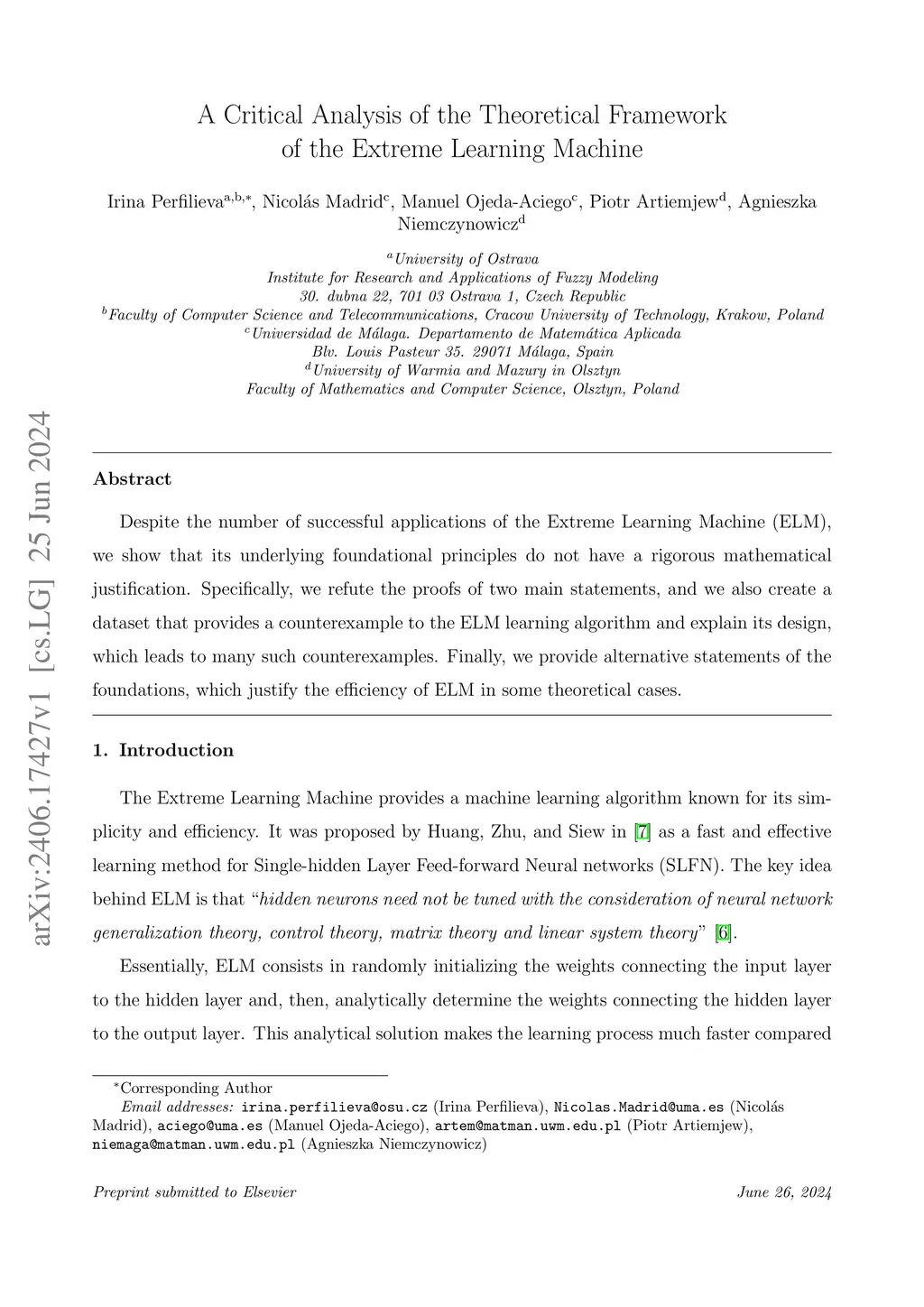 A Critical Analysis of the Theoretical Framework of the Extreme Learning