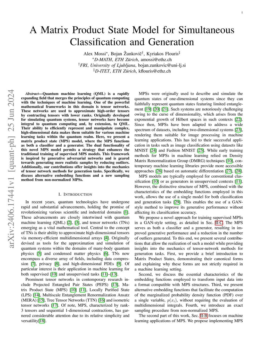 A Matrix Product State Model for Simultaneous Classification and Generation