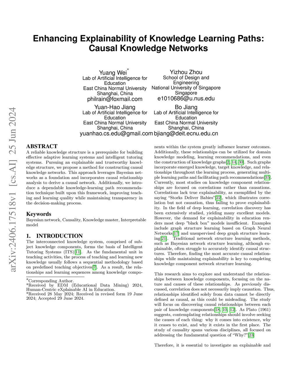 A reliable knowledge structure is a prerequisite for building effective adaptive learning systems and intelligent tutoring systems. Pursuing an explainable and trustworthy knowledge structure, we propose a method for constructing causal knowledge networks. This approach leverages Bayesian networks as a foundation and incorporates causal relationship analysis to derive a causal network. Additionally, we introduce a dependable knowledge-learning path recommendation technique built upon this framework, improving teaching and learning quality while maintaining transparency in the decision-making process.