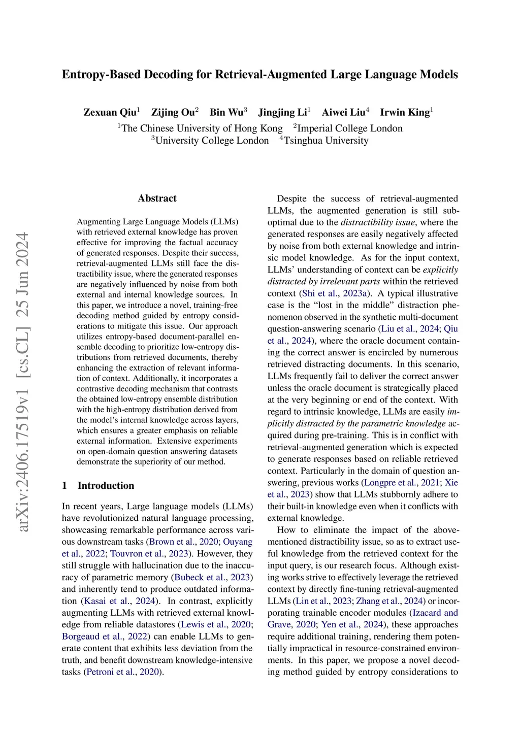 Entropy-Based Decoding for Retrieval-Augmented Large Language Models