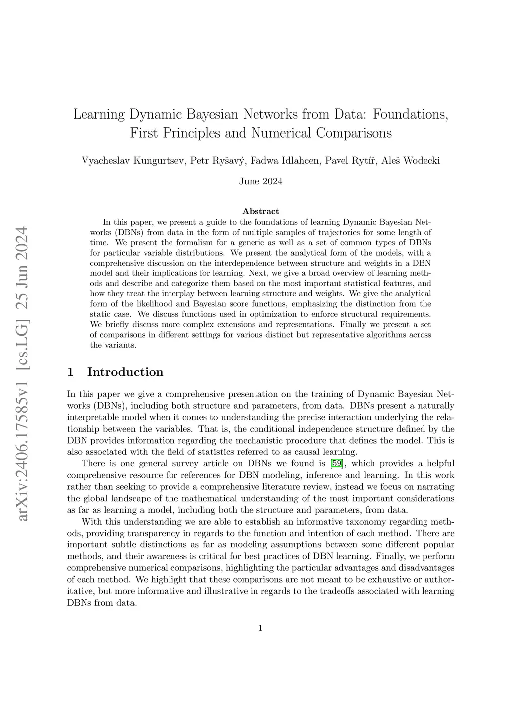 Learning Dynamic Bayesian Networks from Data: Foundations, First