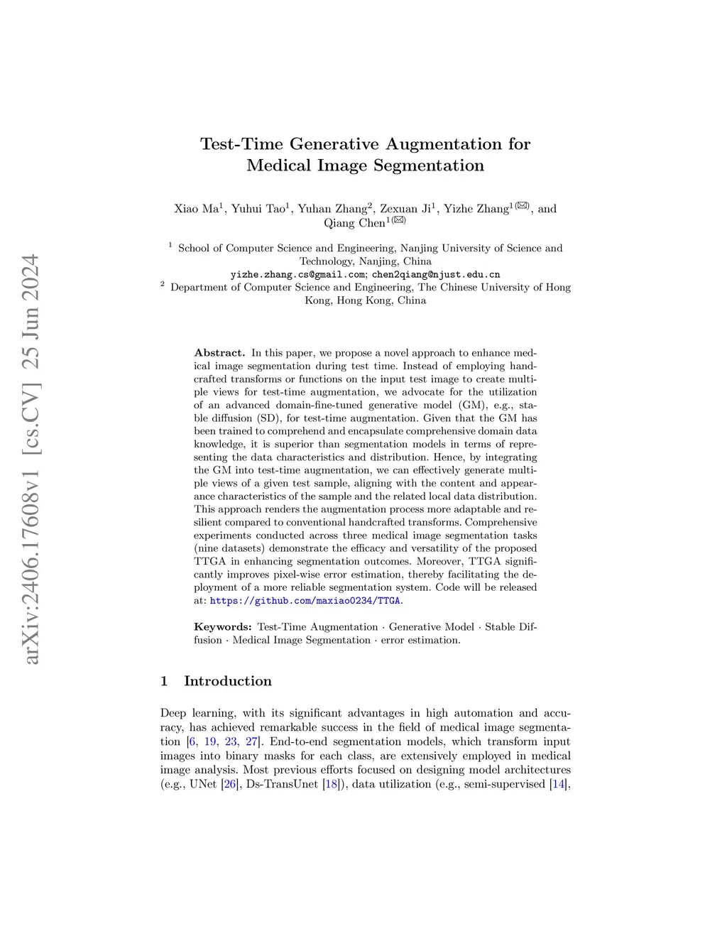 Medical image segmentation is critical for clinical diagnosis, treatment planning, and monitoring, yet segmentation models often struggle with uncertainties stemming from occlusions, ambiguous boundaries, and variations in imaging devices. Traditional test-time augmentation (TTA) techniques typically rely on predefined geometric and photometric transformations, limiting their adaptability and effectiveness in complex medical scenarios. In this study, we introduced Test-Time Generative Augmentation (TTGA), a novel augmentation strategy specifically tailored for medical image segmentation at inference time. Different from conventional augmentation strategies that suffer from excessive randomness or limited flexibility, TTGA leverages a domain-fine-tuned generative model to produce contextually relevant and diverse augmentations tailored to the characteristics of each test image. Built upon diffusion model inversion, a masked null-text inversion method is proposed to enable region-specific augmentations during sampling. Furthermore, a dual denoising pathway is designed to balance precise identity preservation with controlled variability. We demonstrate the efficacy of our TTGA through extensive experiments across three distinct segmentation tasks spanning nine datasets. Our results consistently demonstrate that TTGA not only improves segmentation accuracy (with DSC gains ranging from 0.1% to 2.3% over the baseline) but also offers pixel-wise error estimation (with DSC gains ranging from 1.1% to 29.0% over the baseline). The source code and demonstration are available at:this https URL.