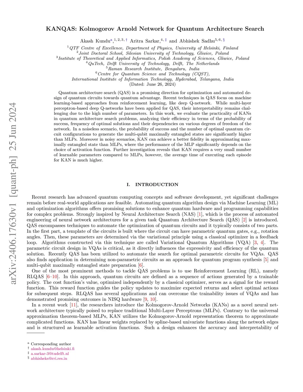 KANQAS: Kolmogorov-Arnold Network for Quantum Architecture Search