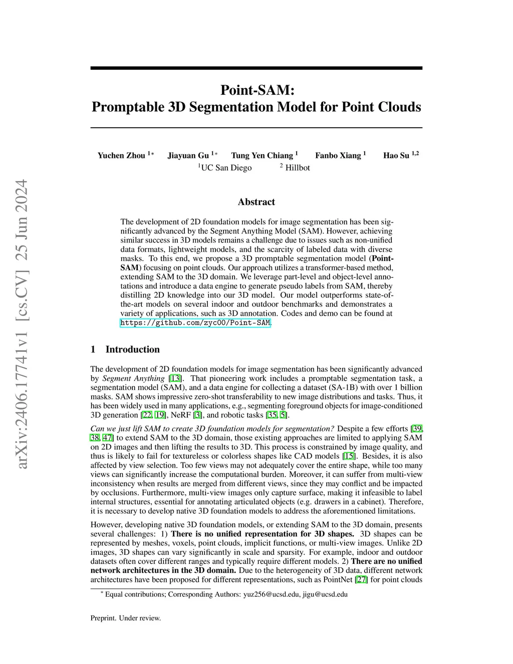 Point-SAM: Promptable 3D Segmentation Model for Point Clouds