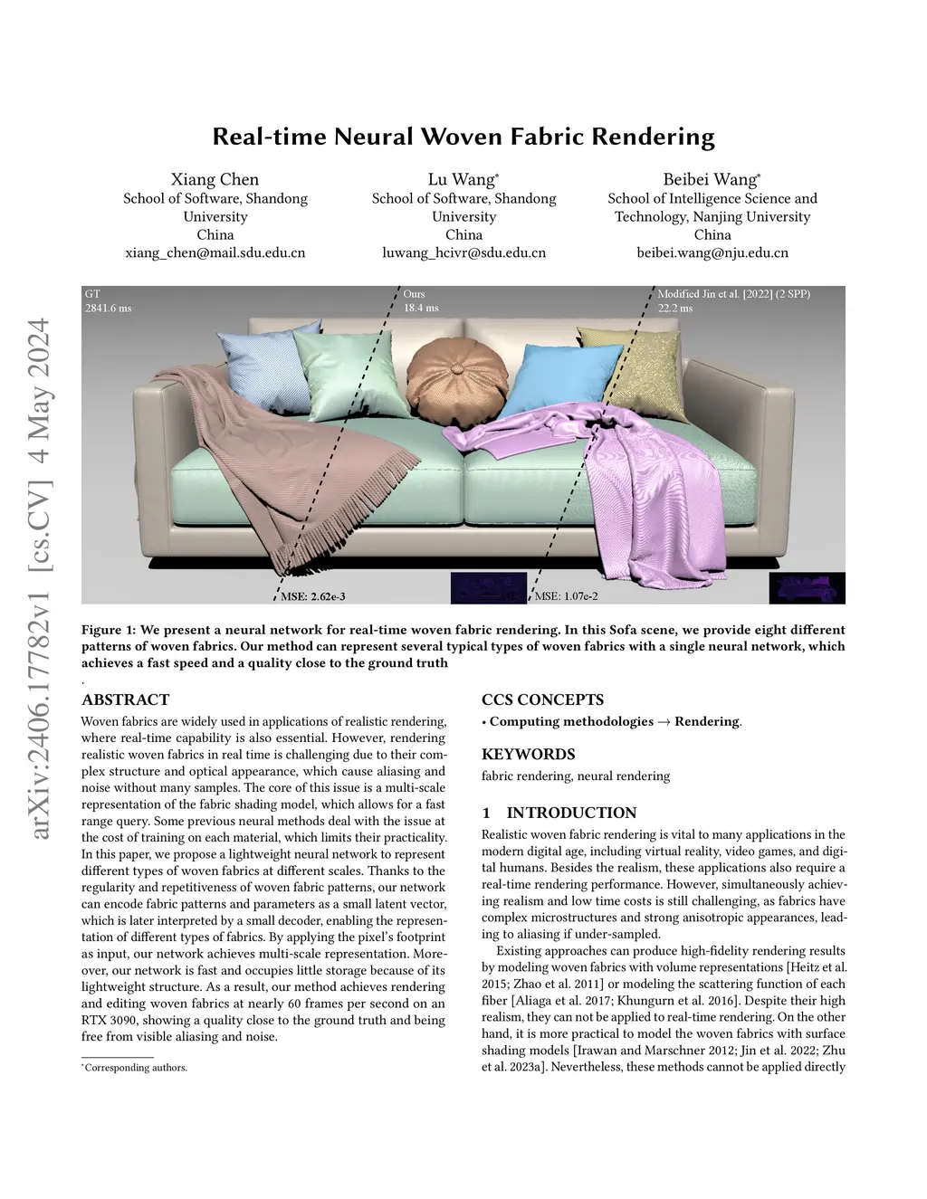 Woven fabrics are widely used in applications of realistic rendering, where real-time capability is also essential. However, rendering realistic woven fabrics in real time is challenging due to their complex structure and optical appearance, which cause aliasing and noise without many samples. The core of this issue is a multi-scale representation of the fabric shading model, which allows for a fast range query. Some previous neural methods deal with the issue at the cost of training on each material, which limits their practicality. In this paper, we propose a lightweight neural network to represent different types of woven fabrics at different scales. Thanks to the regularity and repetitiveness of woven fabric patterns, our network can encode fabric patterns and parameters as a small latent vector, which is later interpreted by a small decoder, enabling the representation of different types of fabrics. By applying the pixel's footprint as input, our network achieves multi-scale representation. Moreover, our network is fast and occupies little storage because of its lightweight structure. As a result, our method achieves rendering and editing woven fabrics at nearly 60 frames per second on an RTX 3090, showing a quality close to the ground truth and being free from visible aliasing and noise.