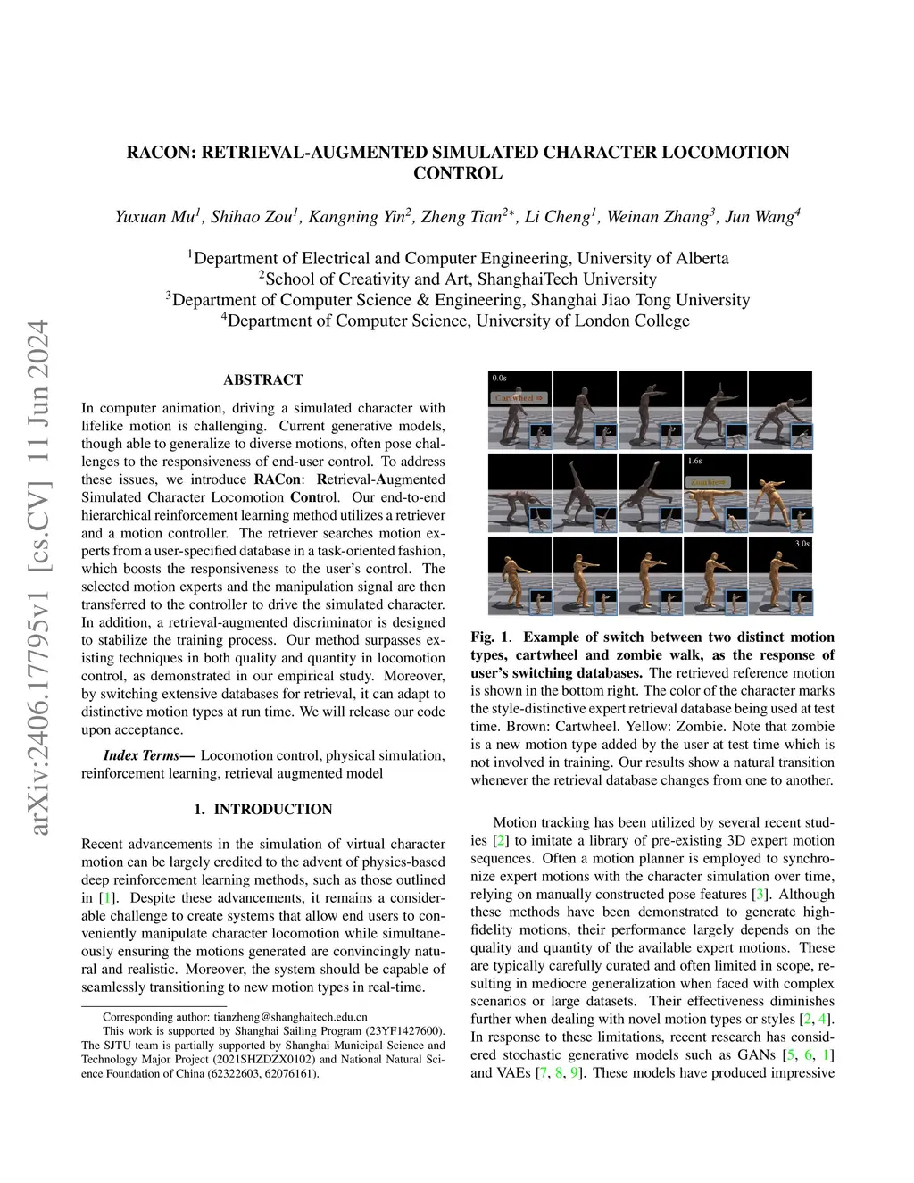 RACon: Retrieval-Augmented Simulated Character Locomotion Control