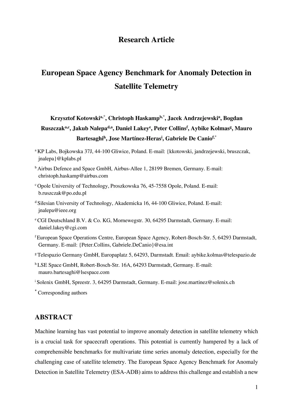European Space Agency Benchmark for Anomaly Detection in Satellite Telemetry