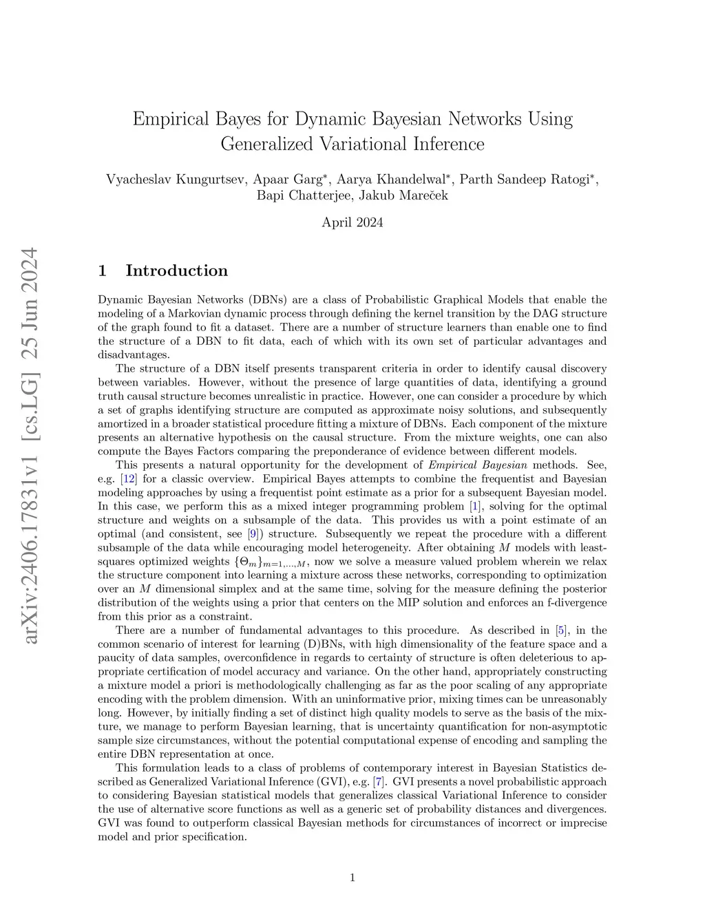 In this work, we demonstrate the Empirical Bayes approach to learning a Dynamic Bayesian Network. By starting with several point estimates of structure and weights, we can use a data-driven prior to subsequently obtain a model to quantify uncertainty. This approach uses a recent development of Generalized Variational Inference, and indicates the potential of sampling the uncertainty of a mixture of DAG structures as well as a parameter posterior.
