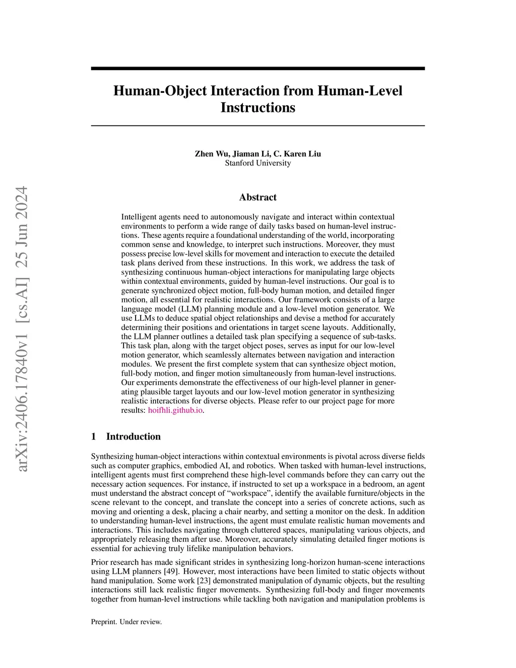 Human-Object Interaction from Human-Level Instructions