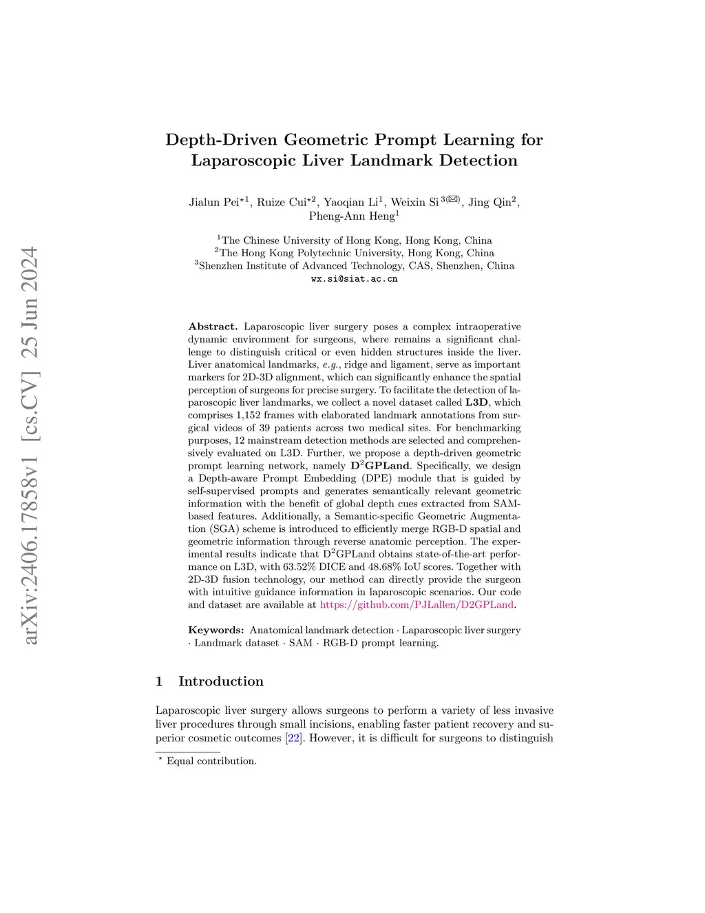 Depth-Driven Geometric Prompt Learning for Laparoscopic Liver Landmark