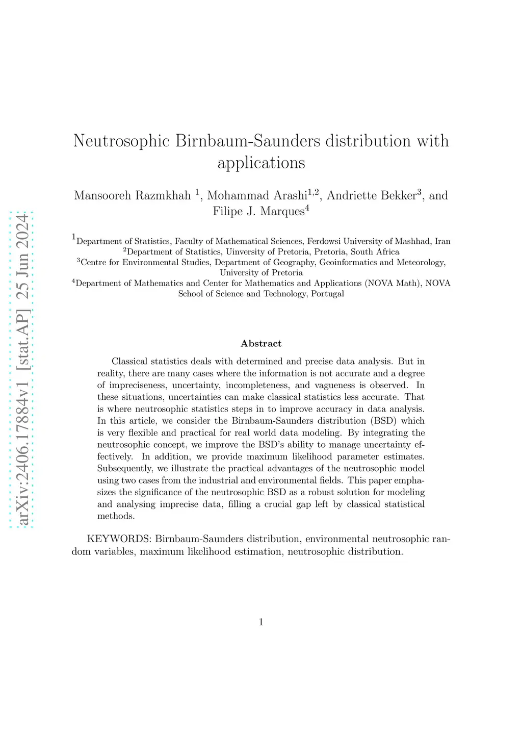 Classical statistics deals with determined and precise data analysis. But in reality, there are many cases where the information is not accurate and a degree of impreciseness, uncertainty, incompleteness, and vagueness is observed. In these situations, uncertainties can make classical statistics less accurate. That is where neutrosophic statistics steps in to improve accuracy in data analysis. In this article, we consider the Birnbaum-Saunders distribution (BSD) which is very flexible and practical for real world data modeling. By integrating the neutrosophic concept, we improve the BSD's ability to manage uncertainty effectively. In addition, we provide maximum likelihood parameter estimates. Subsequently, we illustrate the practical advantages of the neutrosophic model using two cases from the industrial and environmental fields. This paper emphasizes the significance of the neutrosophic BSD as a robust solution for modeling and analysing imprecise data, filling a crucial gap left by classical statistical methods.