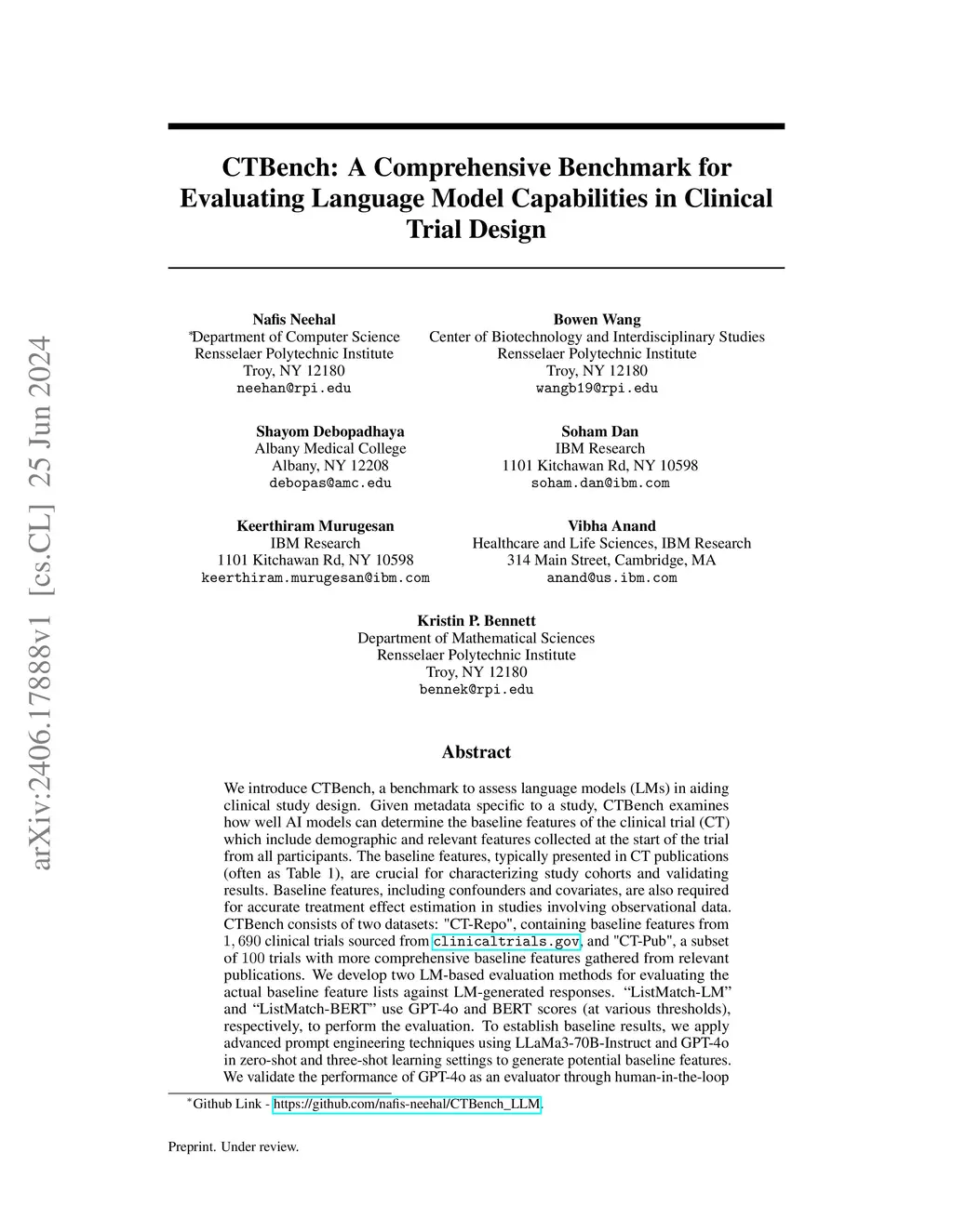 CTBench: A Comprehensive Benchmark for Evaluating Language Model