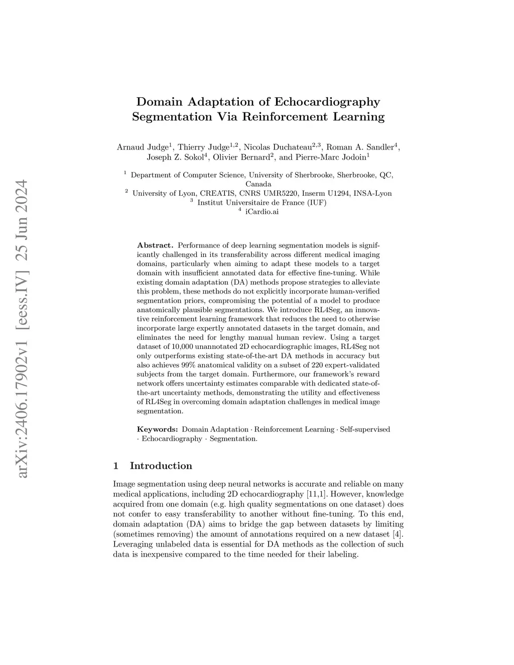 Domain Adaptation of Echocardiography Segmentation Via Reinforcement