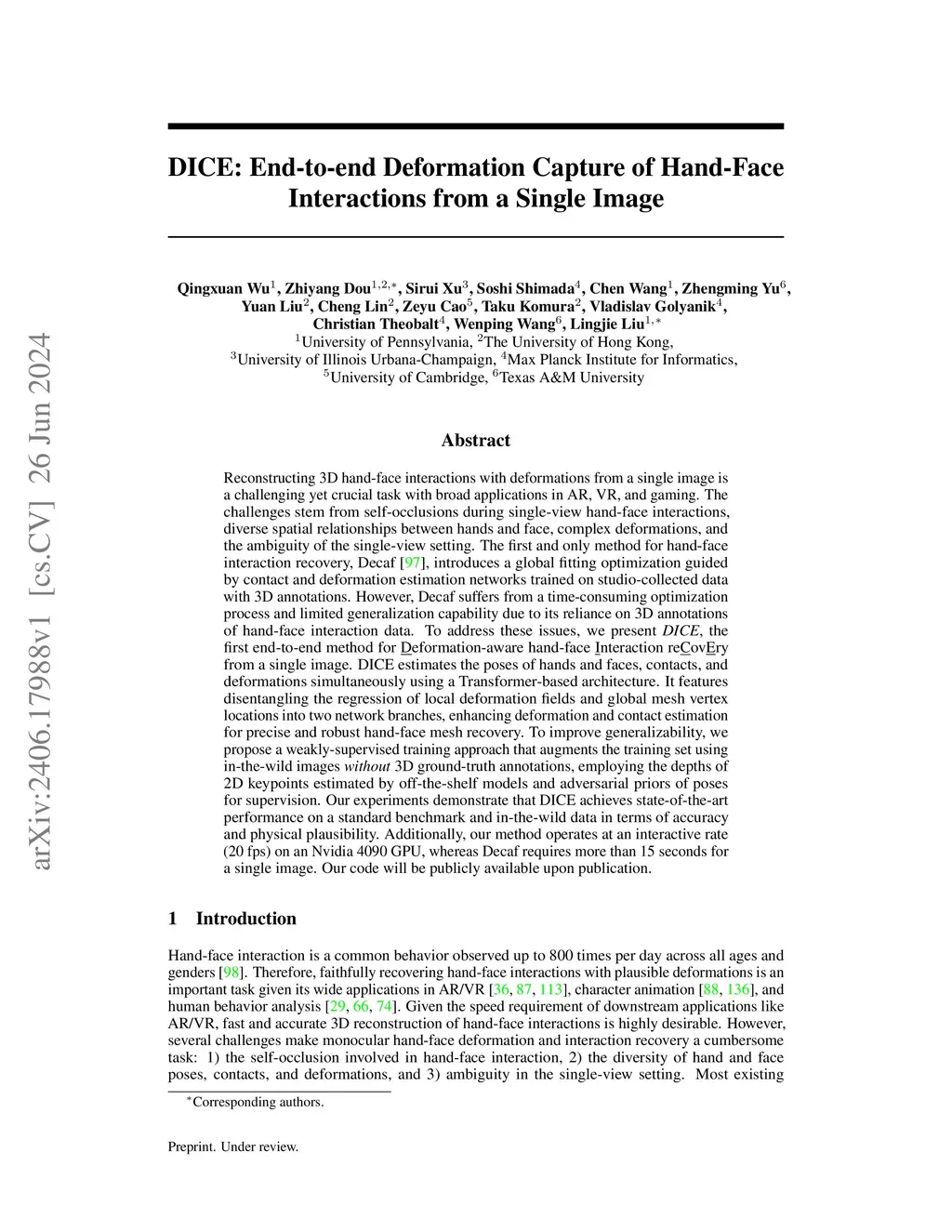 DICE: End-to-end Deformation Capture of Hand-Face Interactions from a Single Image