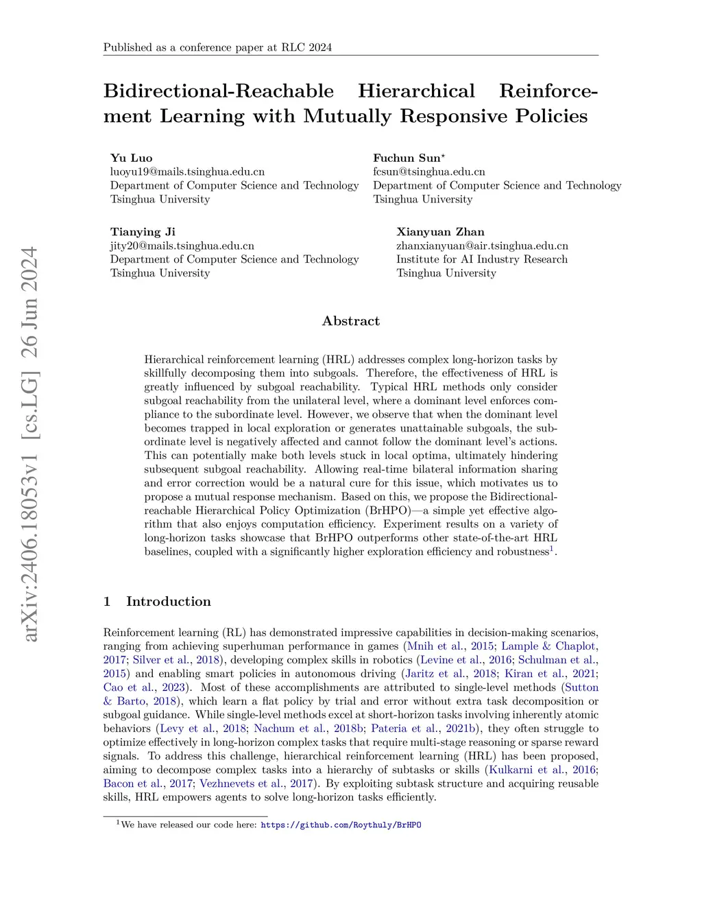 Hierarchical reinforcement learning (HRL) addresses complex long-horizon tasks by skillfully decomposing them into subgoals. Therefore, the effectiveness of HRL is greatly influenced by subgoal reachability. Typical HRL methods only consider subgoal reachability from the unilateral level, where a dominant level enforces compliance to the subordinate level. However, we observe that when the dominant level becomes trapped in local exploration or generates unattainable subgoals, the subordinate level is negatively affected and cannot follow the dominant level's actions. This can potentially make both levels stuck in local optima, ultimately hindering subsequent subgoal reachability. Allowing real-time bilateral information sharing and error correction would be a natural cure for this issue, which motivates us to propose a mutual response mechanism. Based on this, we propose the Bidirectional-reachable Hierarchical Policy Optimization (BrHPO)--a simple yet effective algorithm that also enjoys computation efficiency. Experiment results on a variety of long-horizon tasks showcase that BrHPO outperforms other state-of-the-art HRL baselines, coupled with a significantly higher exploration efficiency and robustness.