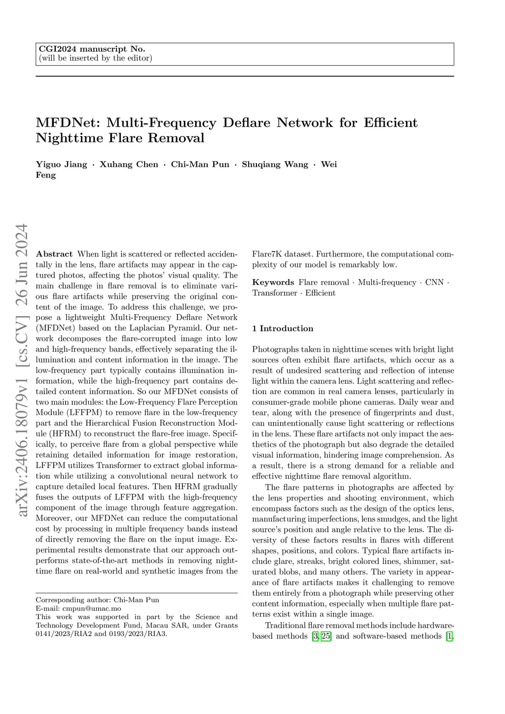 MFDNet: Multi-Frequency Deflare Network for Efficient Nighttime Flare