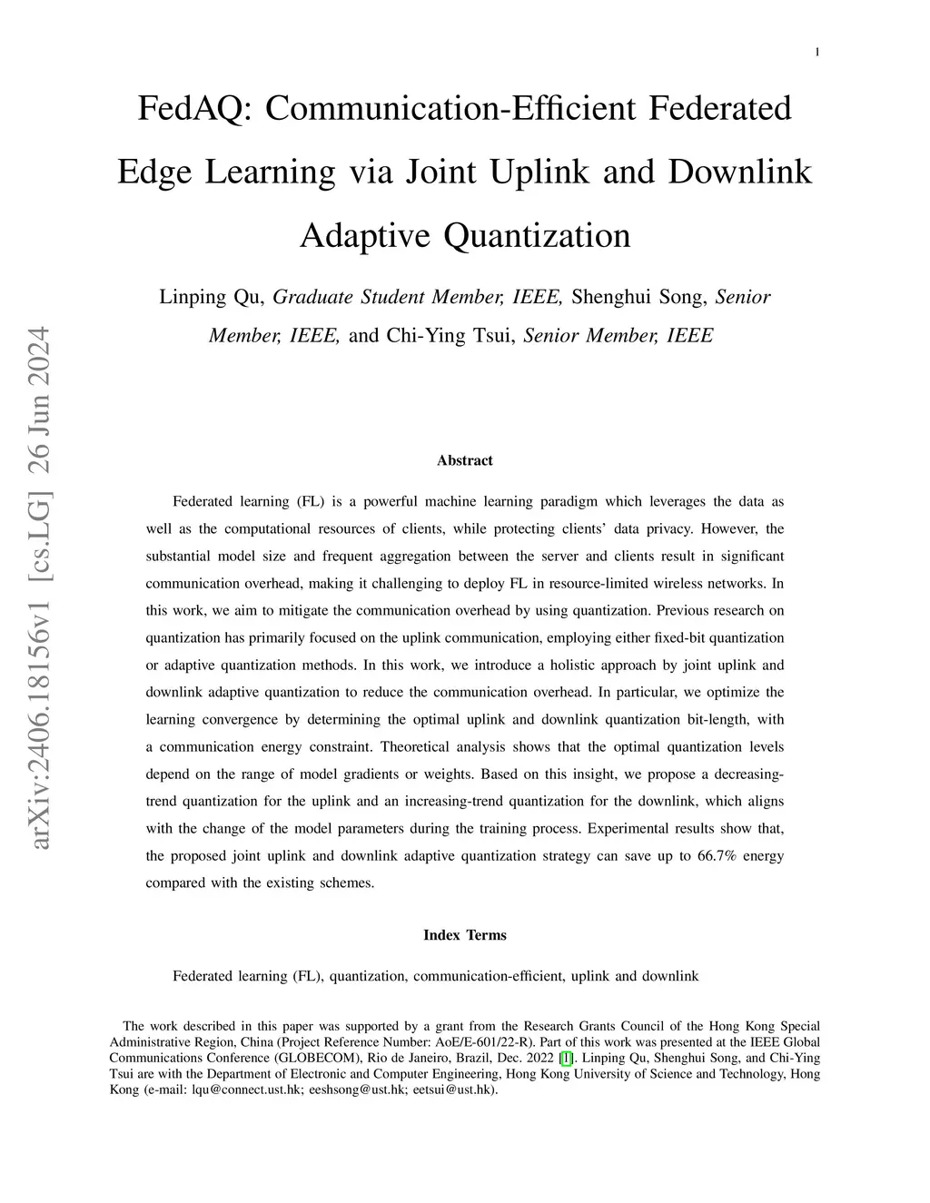 FedAQ: Communication-Efficient Federated Edge Learning via Joint Uplink
