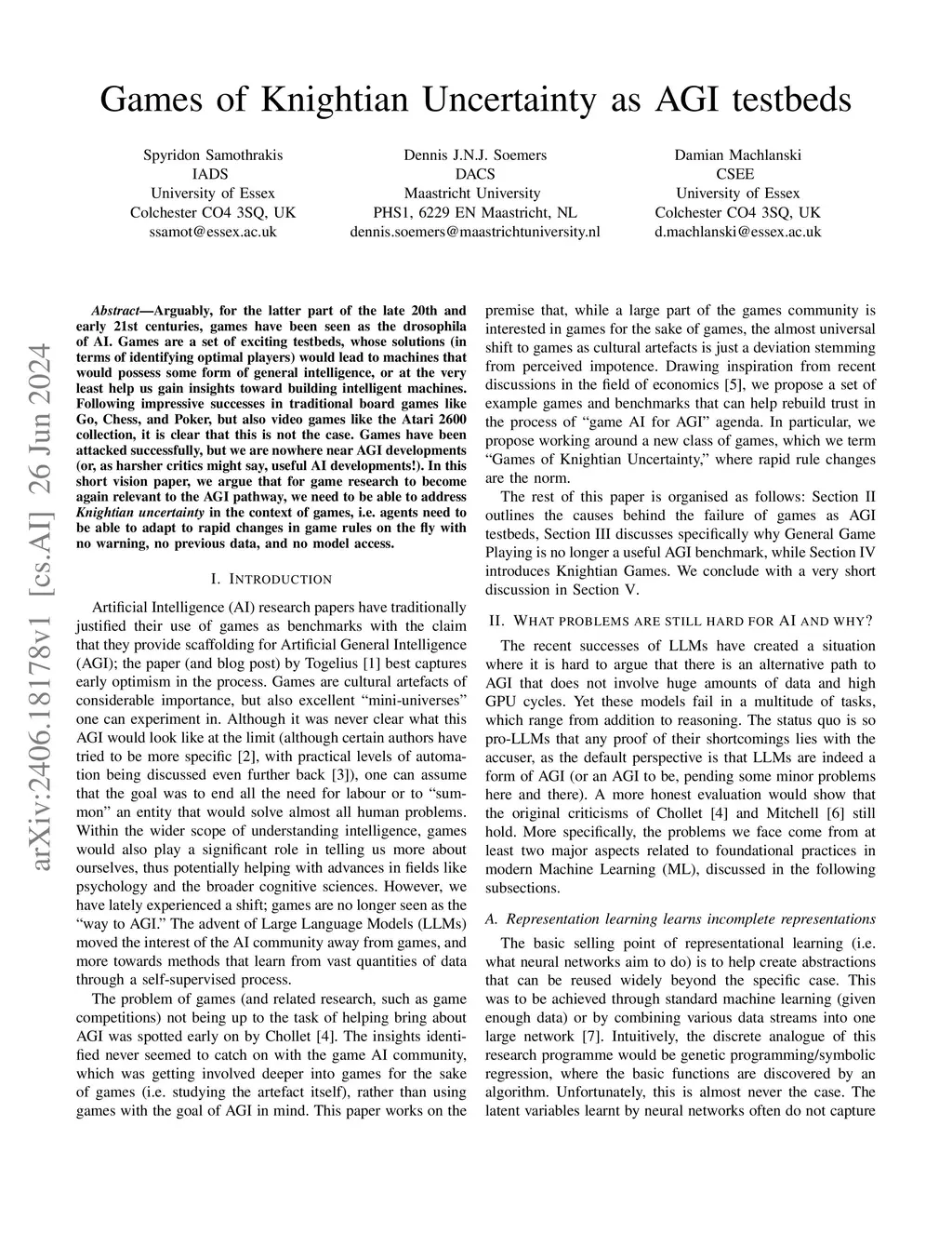 Arguably, for the latter part of the late 20th and early 21st centuries, games have been seen as the drosophila of AI. Games are a set of exciting testbeds, whose solutions (in terms of identifying optimal players) would lead to machines that would possess some form of general intelligence, or at the very least help us gain insights toward building intelligent machines. Following impressive successes in traditional board games like Go, Chess, and Poker, but also video games like the Atari 2600 collection, it is clear that this is not the case. Games have been attacked successfully, but we are nowhere near AGI developments (or, as harsher critics might say, useful AI developments!). In this short vision paper, we argue that for game research to become again relevant to the AGI pathway, we need to be able to address \textit{Knightian uncertainty} in the context of games, i.e. agents need to be able to adapt to rapid changes in game rules on the fly with no warning, no previous data, and no model access.