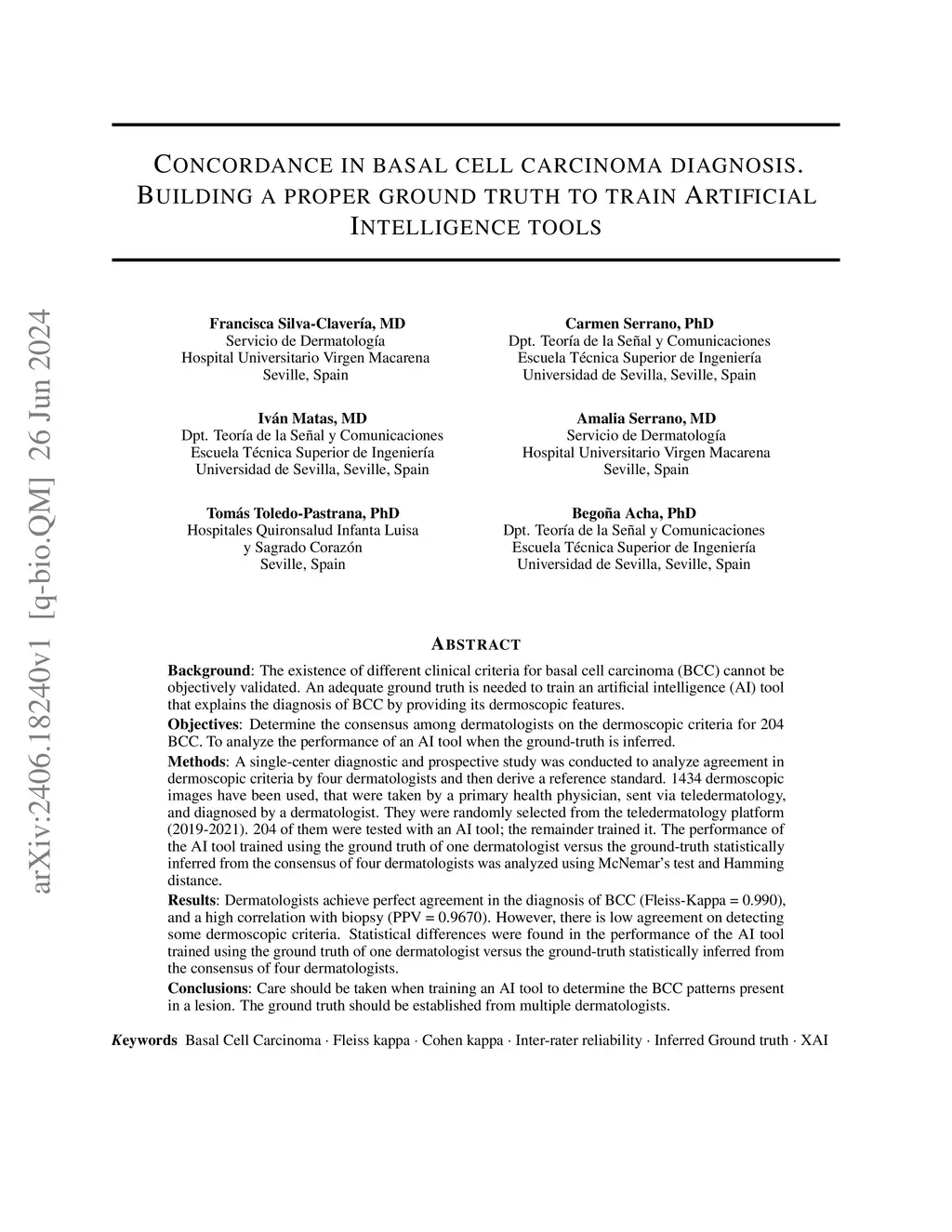 Concordance in basal cell carcinoma diagnosis. Building a proper ground