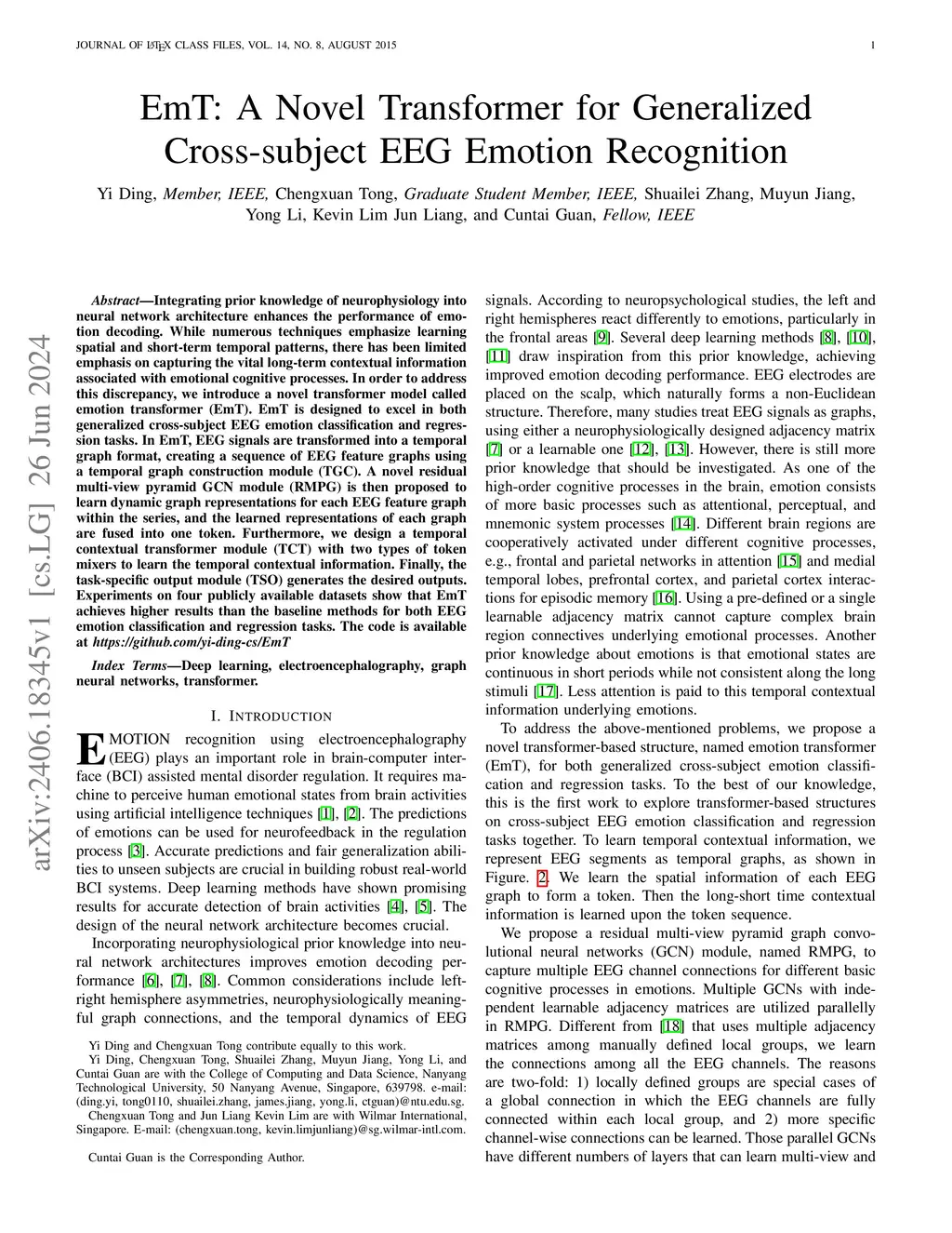 EmT: A Novel Transformer for Generalized Cross-subject EEG Emotion Recognition