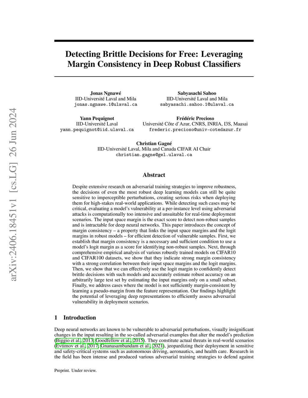 Detecting Brittle Decisions for Free: Leveraging Margin Consistency in Deep Robust Classifiers