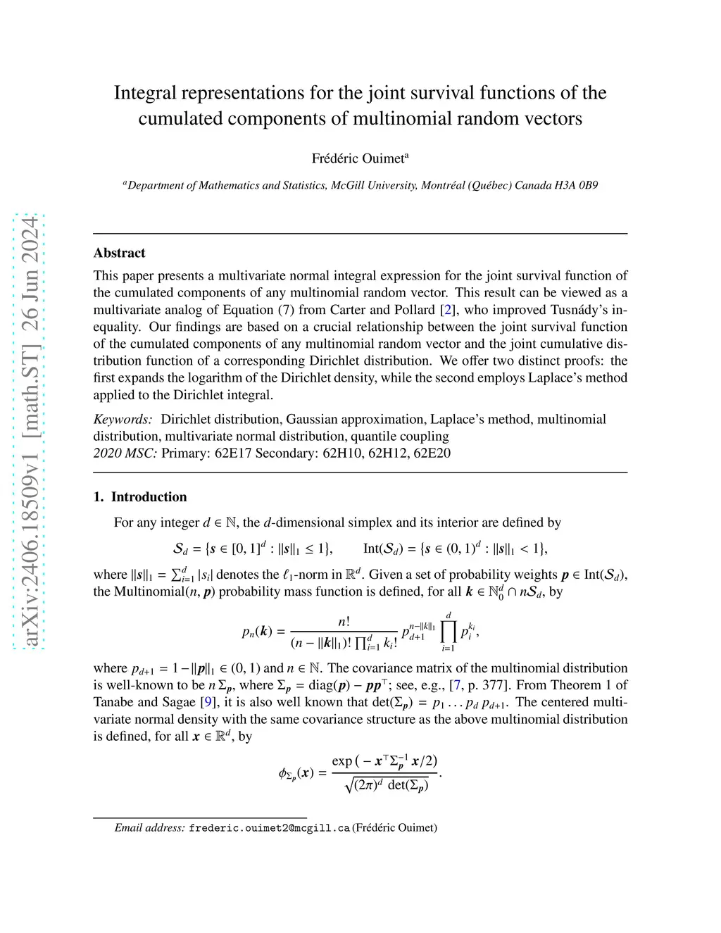 This paper presents a multivariate normal integral expression for the joint survival function of the cumulated components of any multinomial random vector. This result can be viewed as a multivariate analog of Equation (7) from Carter & Pollard (2004), who improved Tusn\ády's inequality. Our findings are based on a crucial relationship between the joint survival function of the cumulated components of any multinomial random vector and the joint cumulative distribution function of a corresponding Dirichlet distribution. We offer two distinct proofs: the first expands the logarithm of the Dirichlet density, while the second employs Laplace's method applied to the Dirichlet integral.