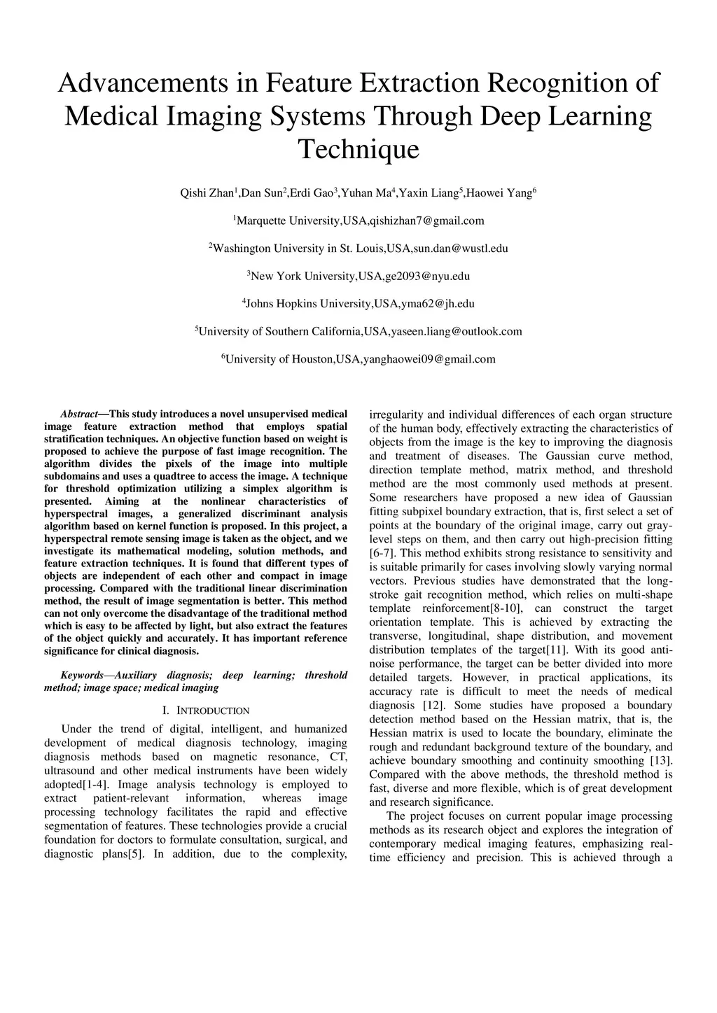 Advancements in Feature Extraction Recognition of Medical Imaging