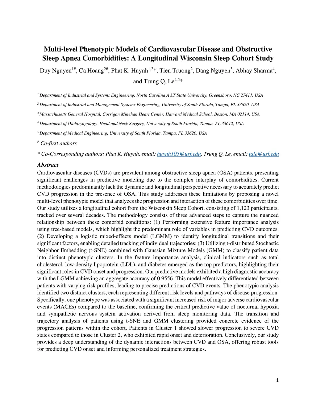Cardiovascular diseases (CVDs) are notably prevalent among patients with obstructive sleep apnea (OSA), posing unique challenges in predicting CVD progression due to the intricate interactions of comorbidities. Traditional models typically lack the necessary dynamic and longitudinal scope to accurately forecast CVD trajectories in OSA patients. This study introduces a novel multi-level phenotypic model to analyze the progression and interplay of these conditions over time, utilizing data from the Wisconsin Sleep Cohort, which includes 1,123 participants followed for decades. Our methodology comprises three advanced steps: (1) Conducting feature importance analysis through tree-based models to underscore critical predictive variables like total cholesterol, low-density lipoprotein (LDL), and diabetes. (2) Developing a logistic mixed-effects model (LGMM) to track longitudinal transitions and pinpoint significant factors, which displayed a diagnostic accuracy of 0.9556. (3) Implementing t-distributed Stochastic Neighbor Embedding (t-SNE) alongside Gaussian Mixture Models (GMM) to segment patient data into distinct phenotypic clusters that reflect varied risk profiles and disease progression pathways. This phenotypic clustering revealed two main groups, with one showing a markedly increased risk of major adverse cardiovascular events (MACEs), underscored by the significant predictive role of nocturnal hypoxia and sympathetic nervous system activity from sleep data. Analysis of transitions and trajectories with t-SNE and GMM highlighted different progression rates within the cohort, with one cluster progressing more slowly towards severe CVD states than the other. This study offers a comprehensive understanding of the dynamic relationship between CVD and OSA, providing valuable tools for predicting disease onset and tailoring treatment approaches.